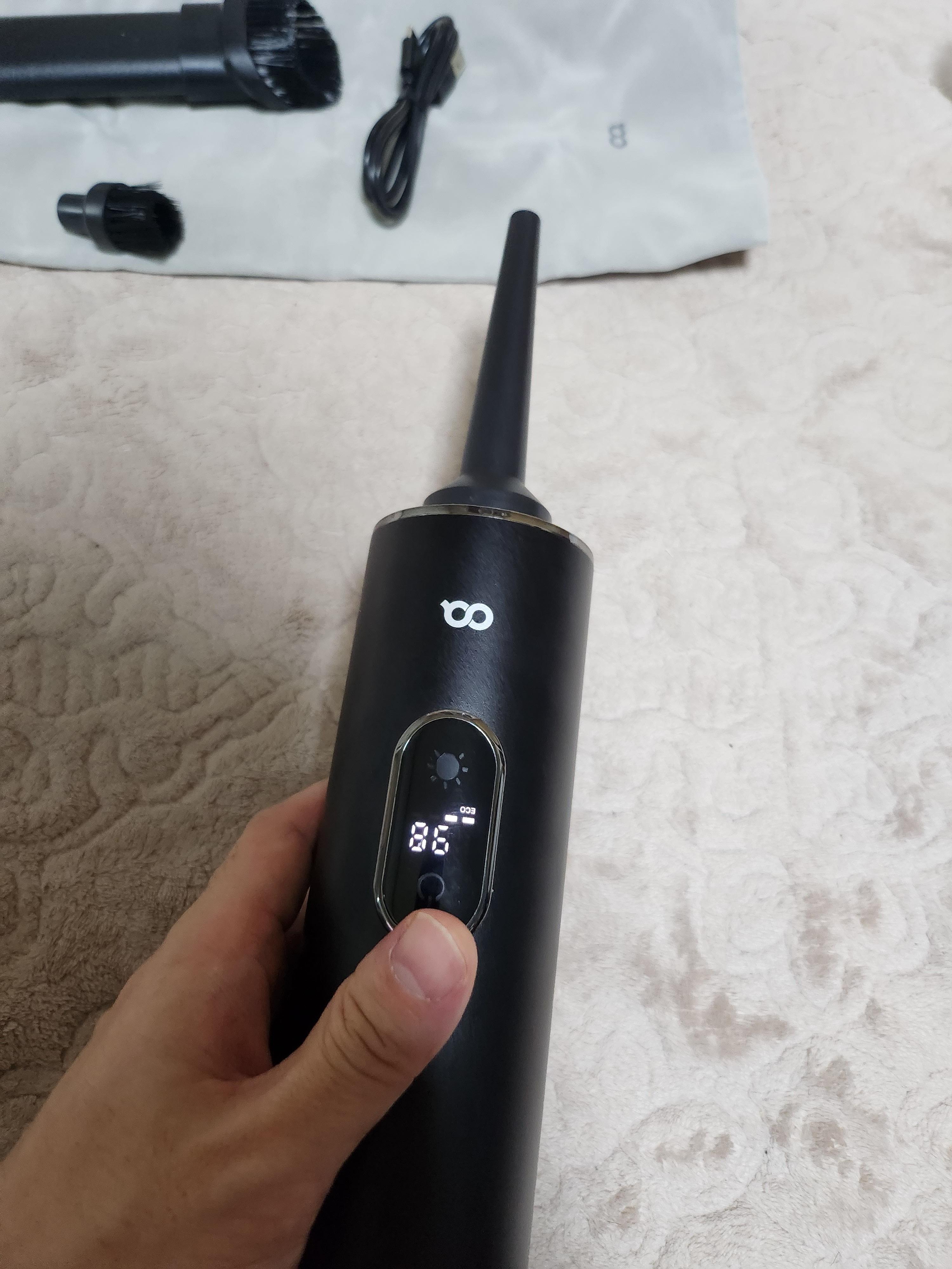 디스플레이도 있어서 배터리 잔량과 에코 모드 맥스 모드 변환도 보이고 무선 청소기라 차에 비치하고 사용하기에 너무 적합한 제품이라고 생각들었어요!