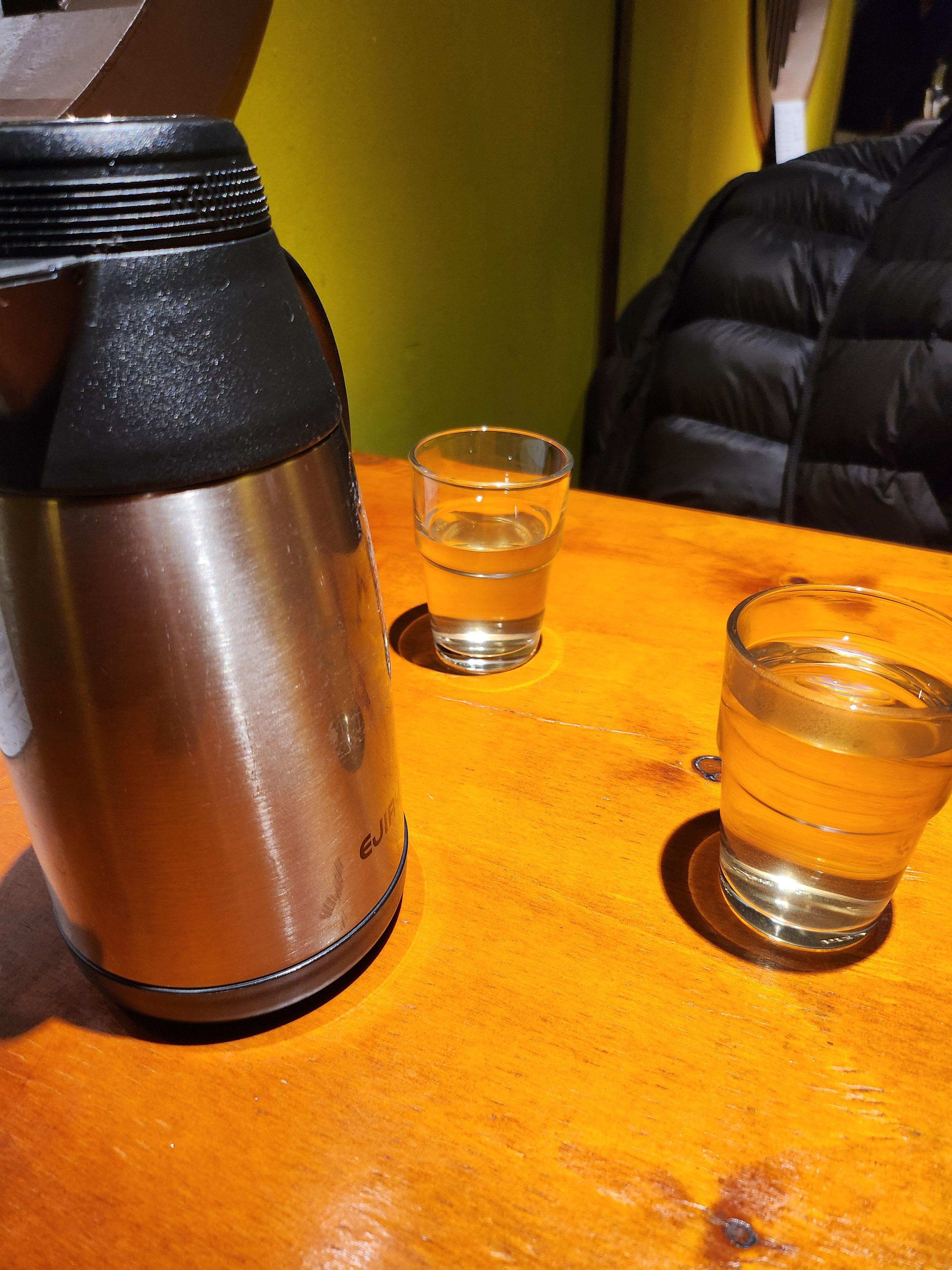 물은 겨울이라 따뜻한 물이 나왔어요