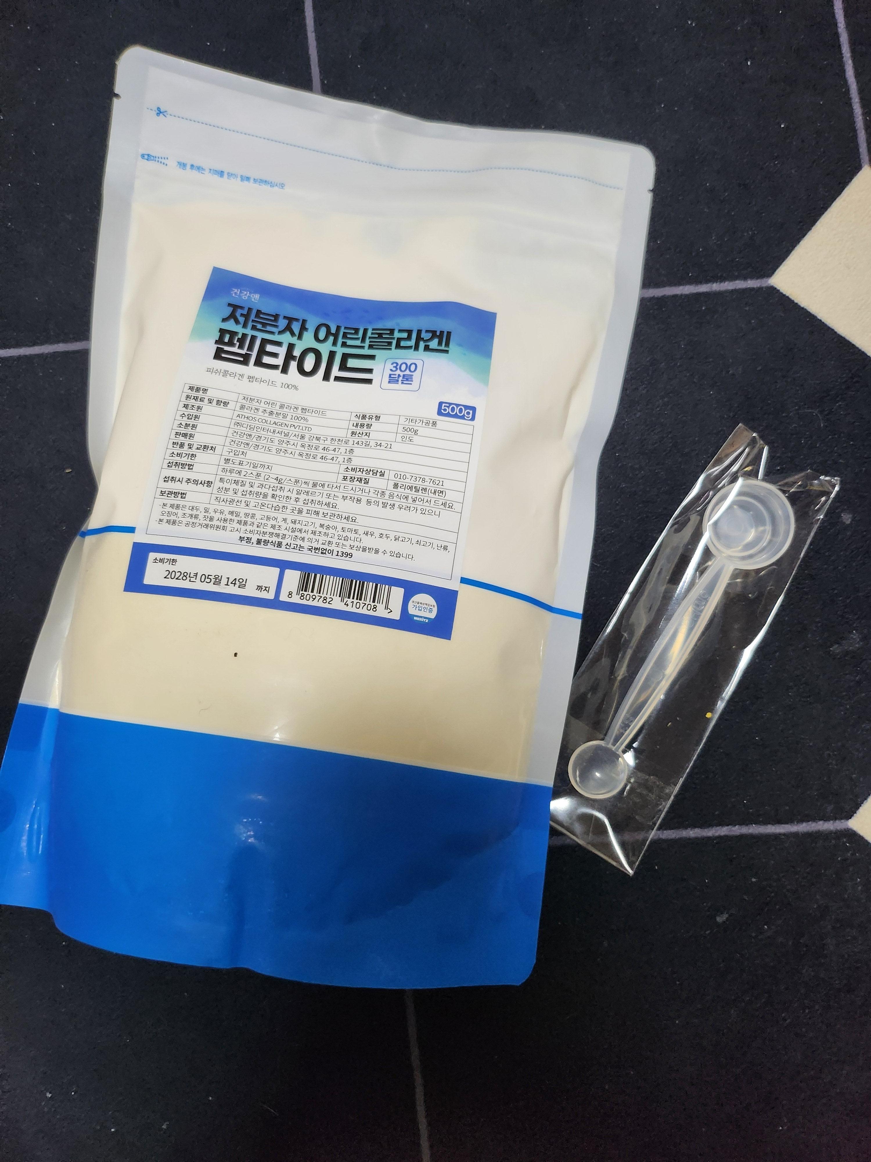 이번에 건강앤 저분자 피쉬콜라겐 가루 500g 펩타이트 분말 무첨가 순수 100%(수용성 어류 콜라겐) 제품을 구매했어요.