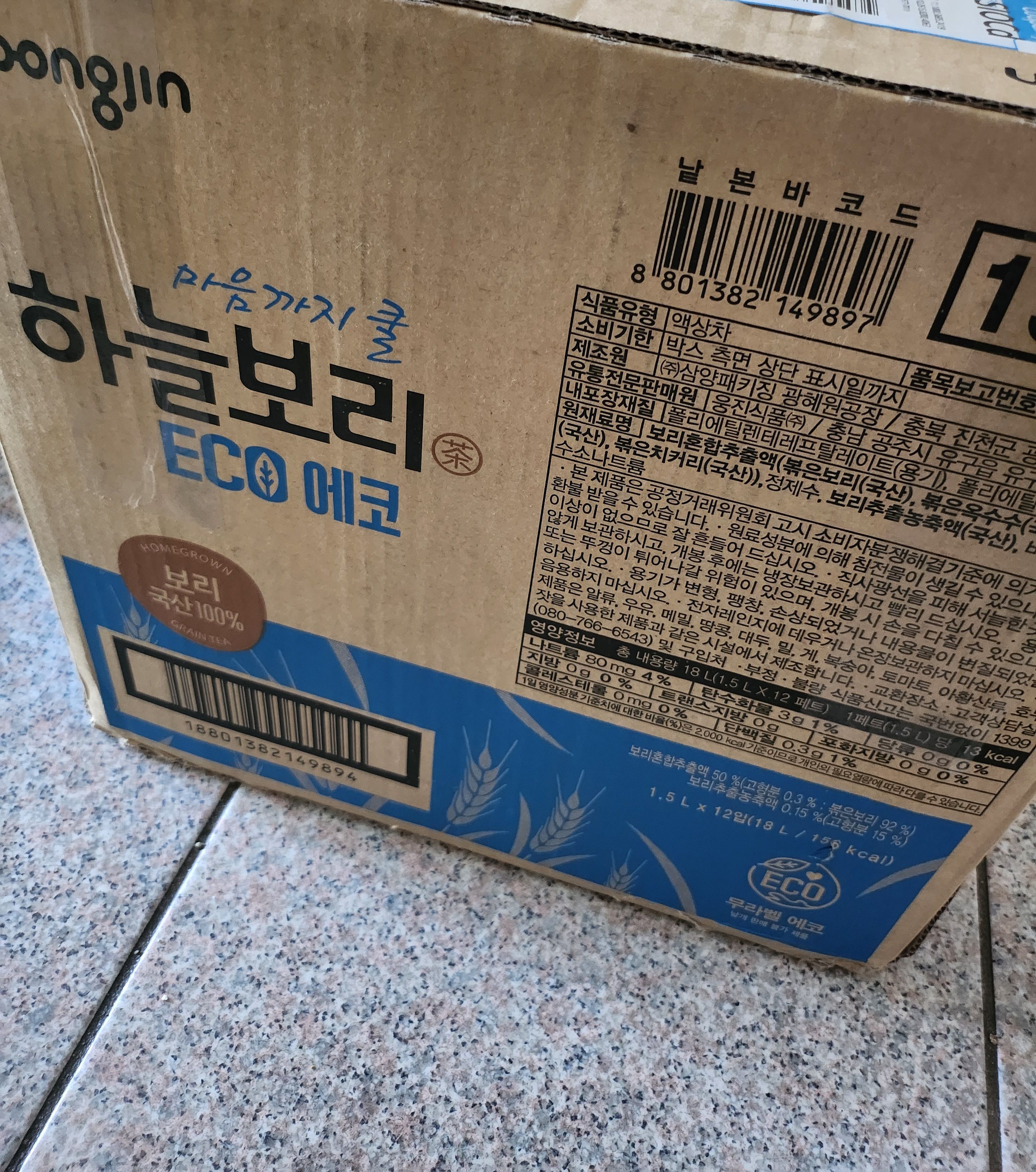 이번에 하늘보리 에코, 1.5L 제품을 구매했어요.