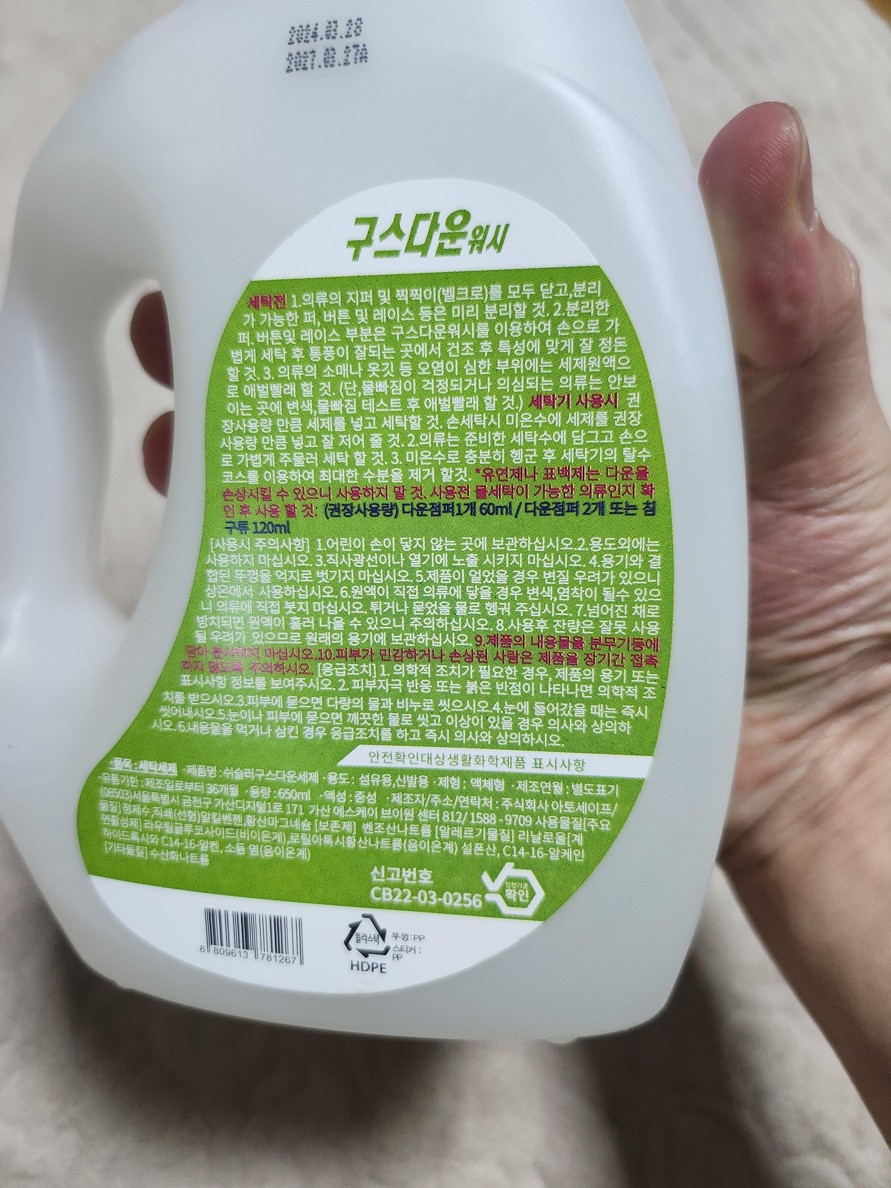 구스다운 세제를 사용해서 세탁기에 세탁하고 보관하자! 정하고 주문해봤어요.