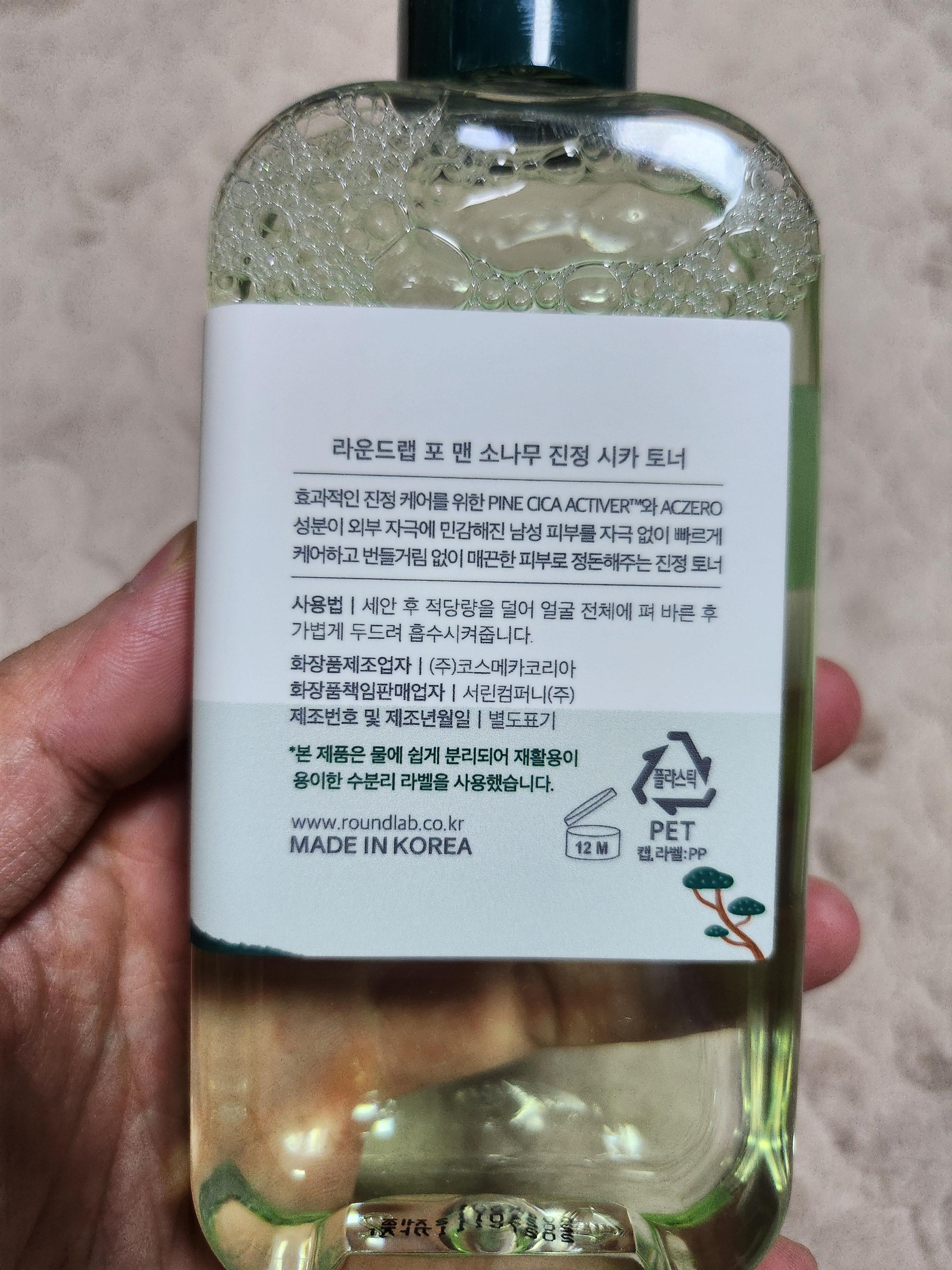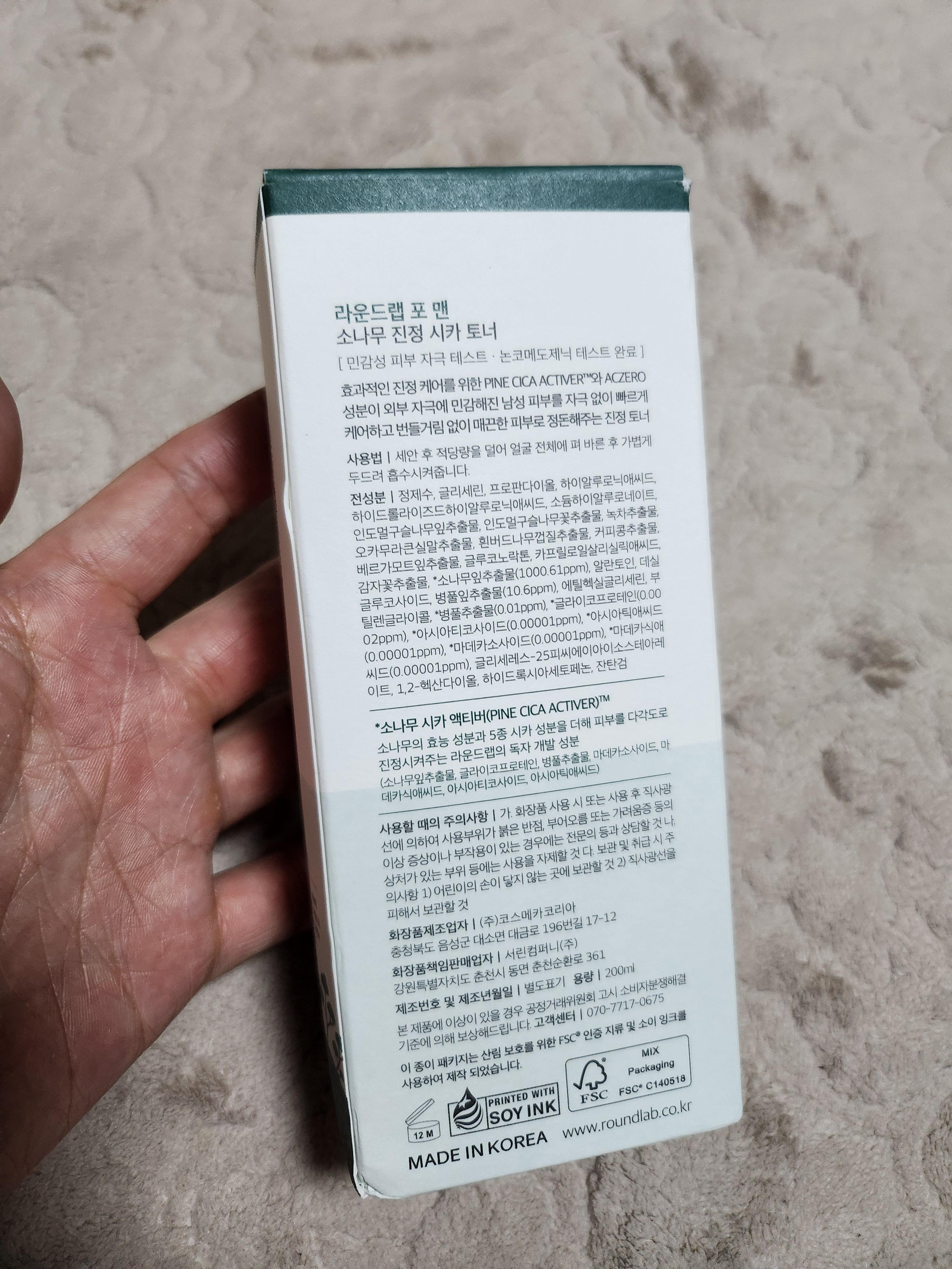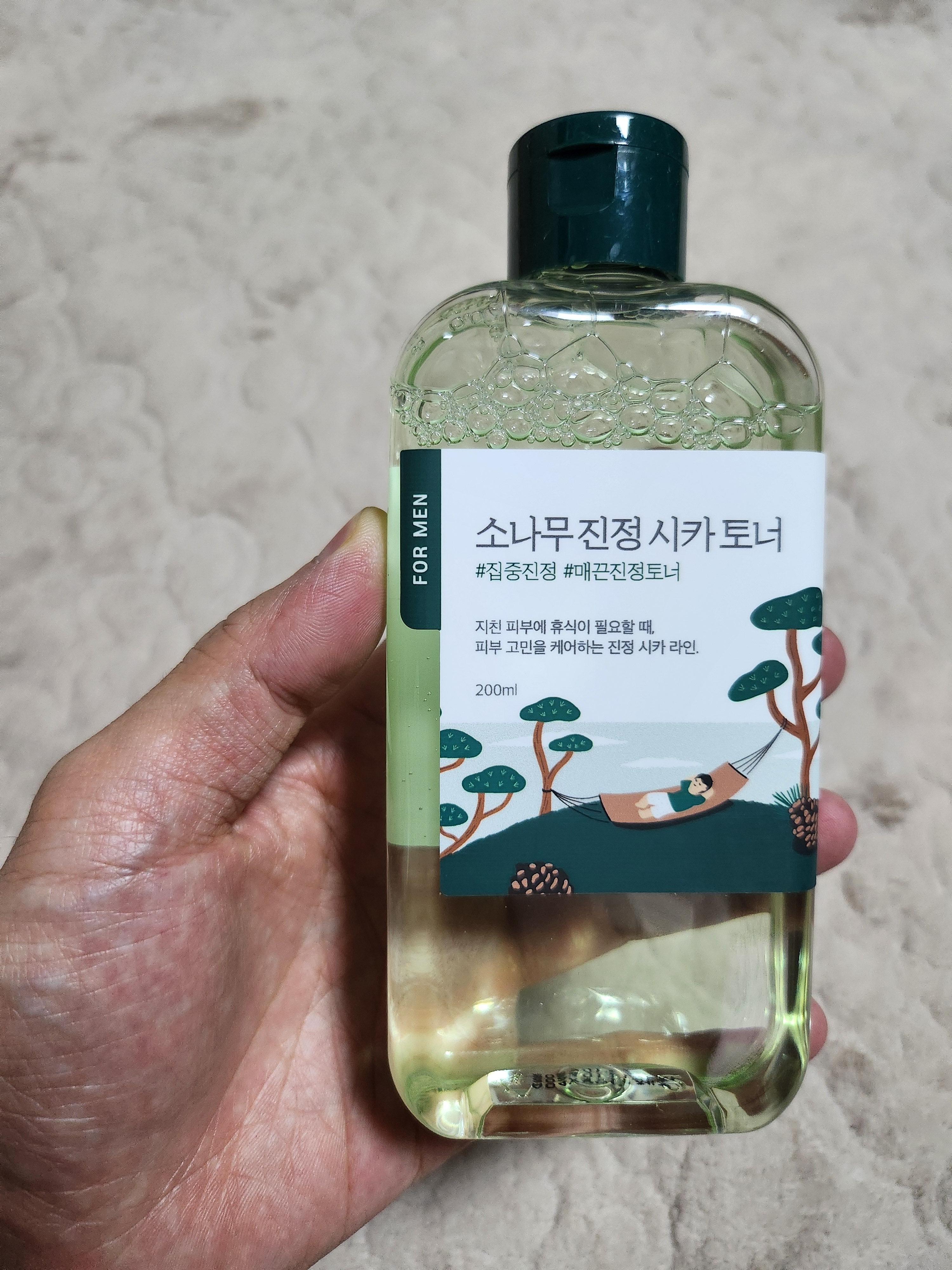 이번에 '라운드랩 포 맨 소나무 진정 시카 토너, 200ml' 제품을 사용했어요.