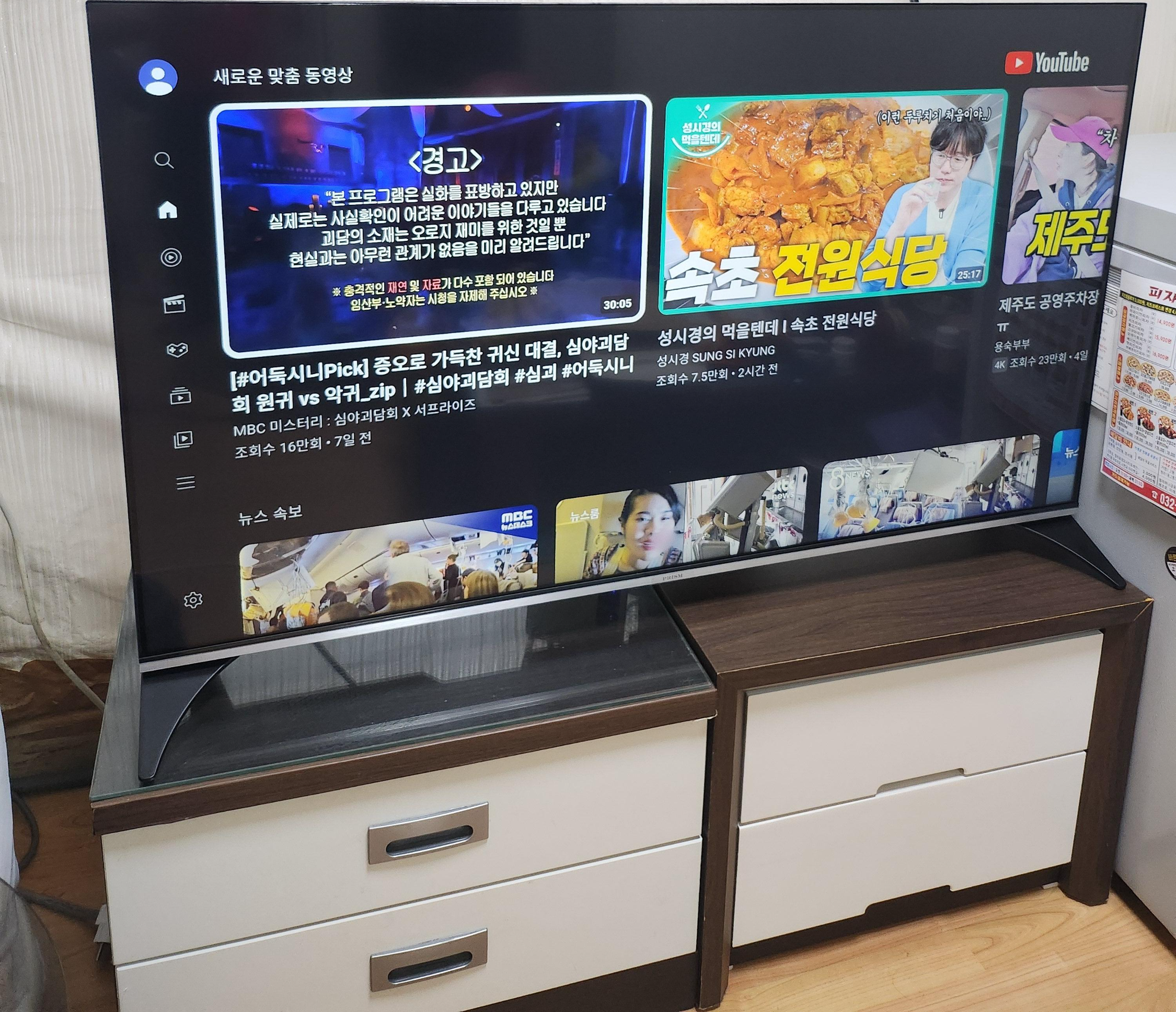 50인치라 기존에 사용하던 TV와 사이즈도 비슷하고 유튜브 넷플릭스 나와서 좋네요!