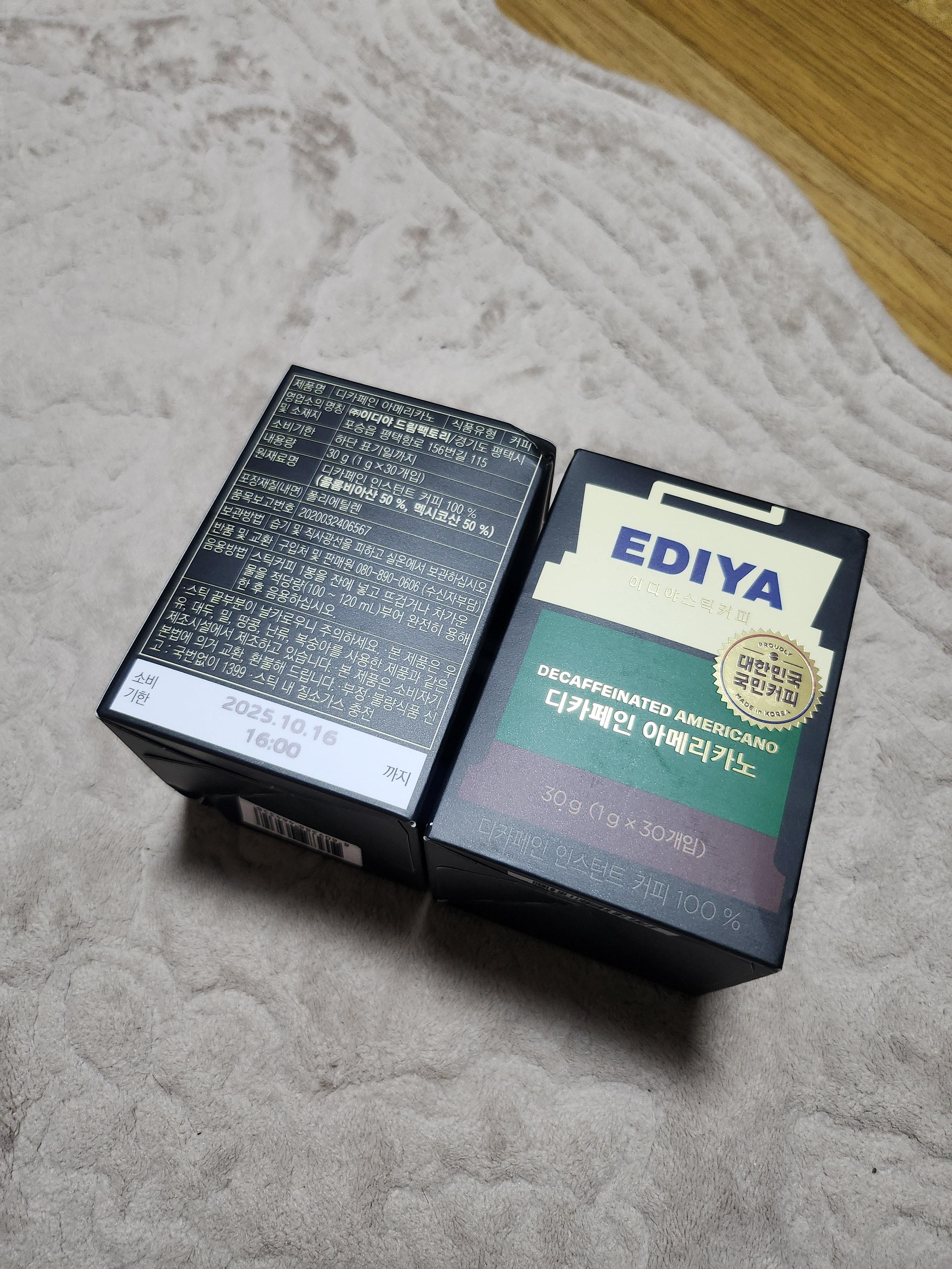 이번에 '이디야 디카페인 아메리카노, 1g, 30개입, 2개' 제품을 구매했어요.