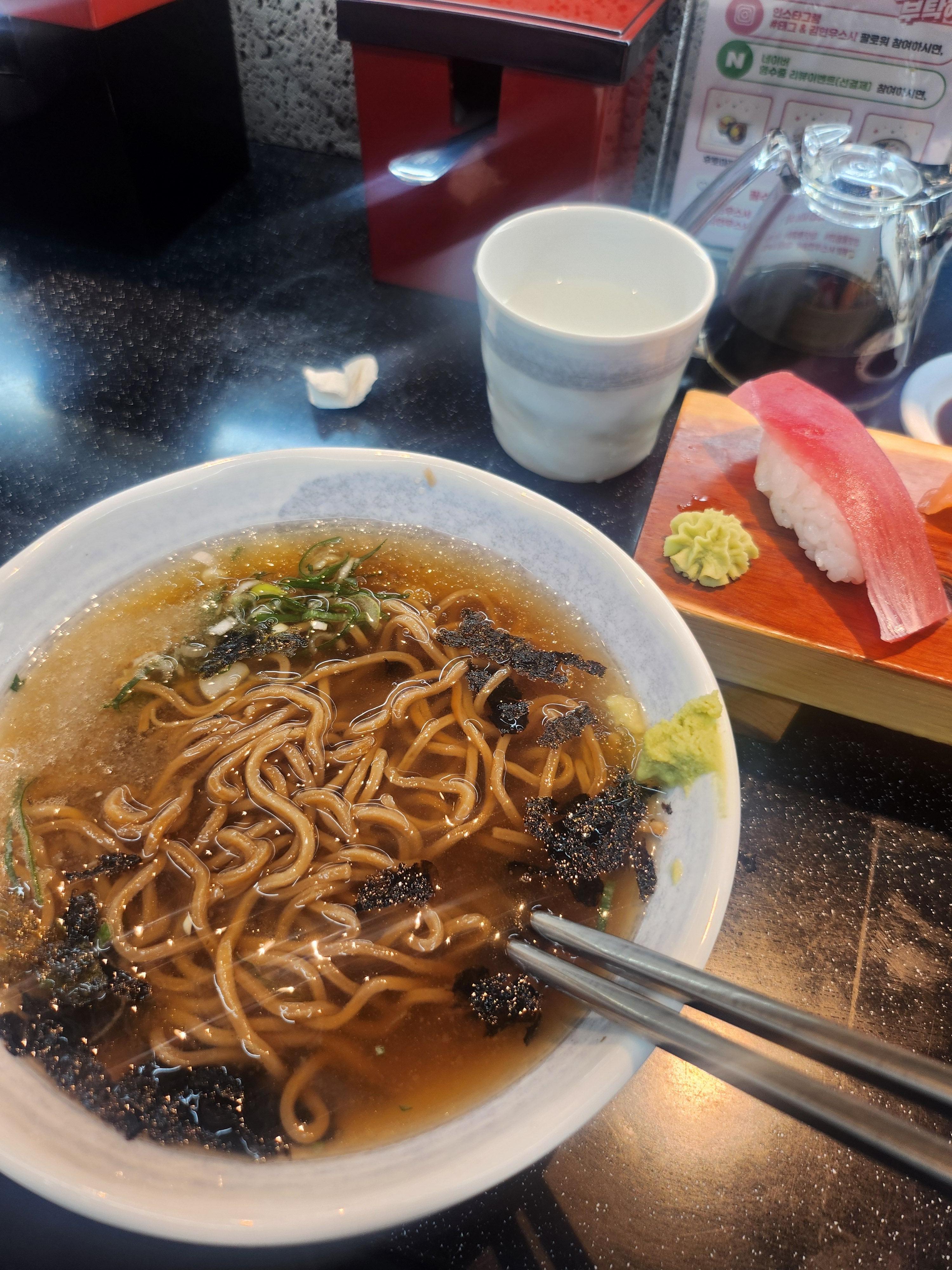 냉모밀과 초밥이 나오는 메뉴로 주문