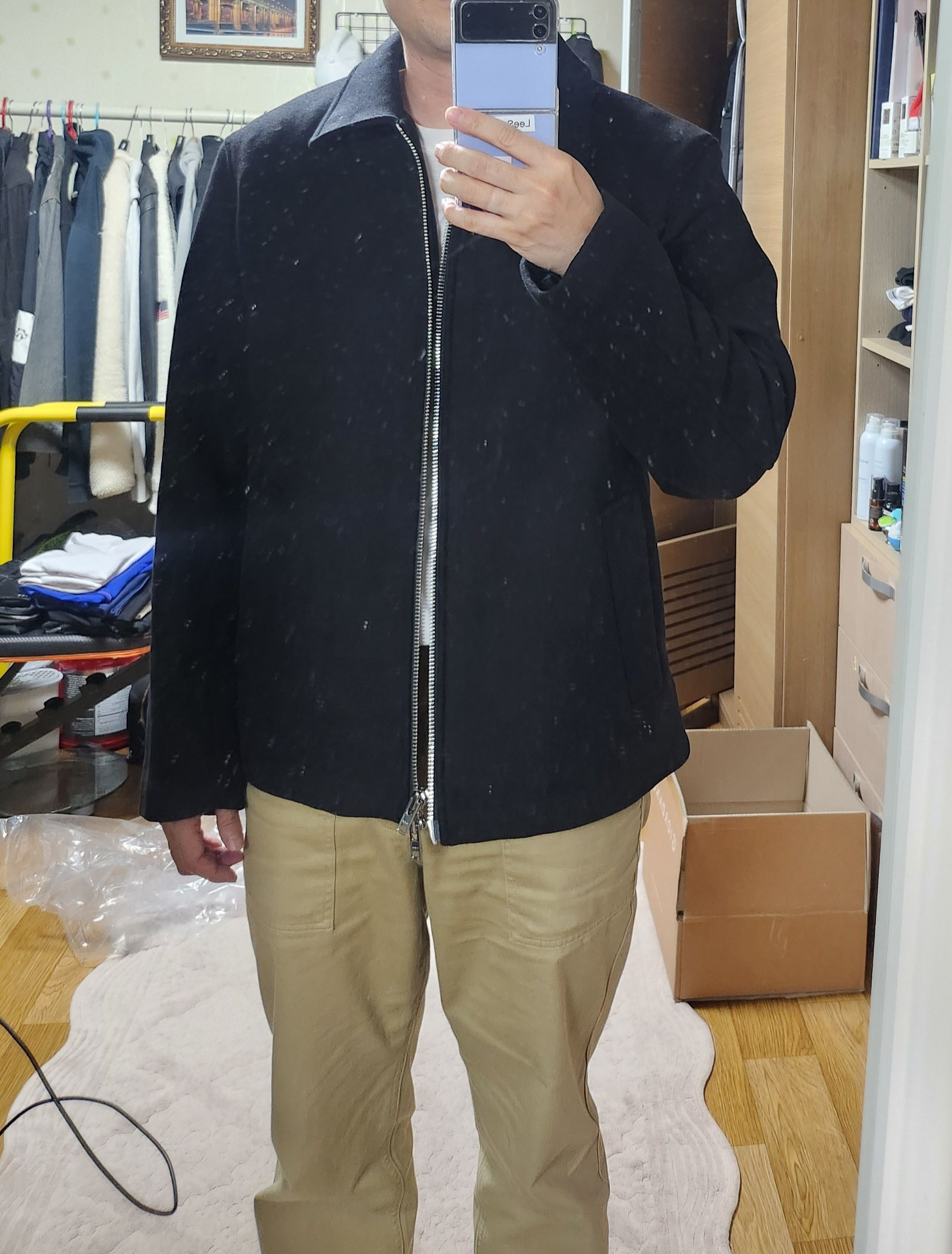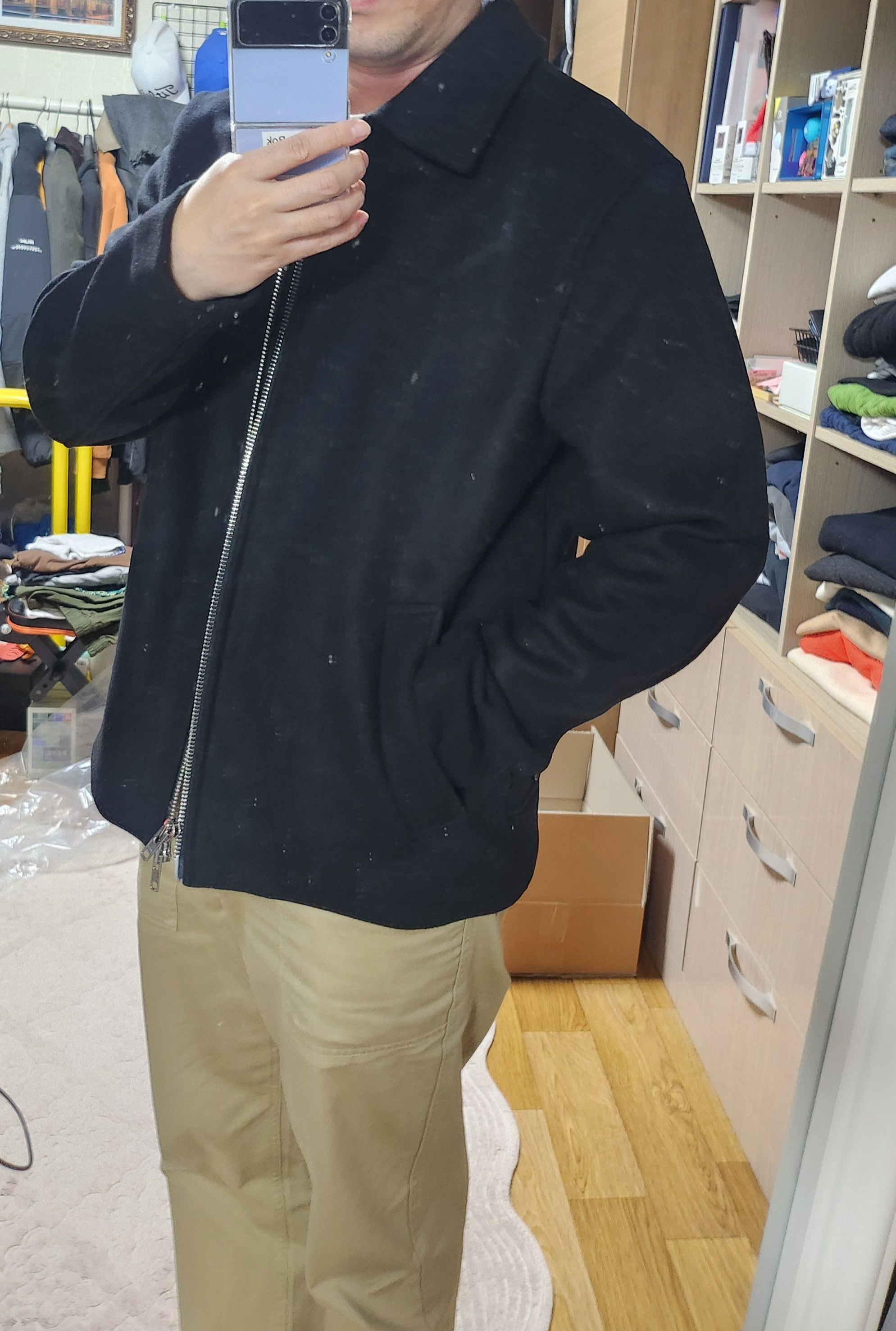 따로 코디는 하지 않고 외출했던 복장에서 자켓만 입어보고 바로 리뷰 올려봅니다