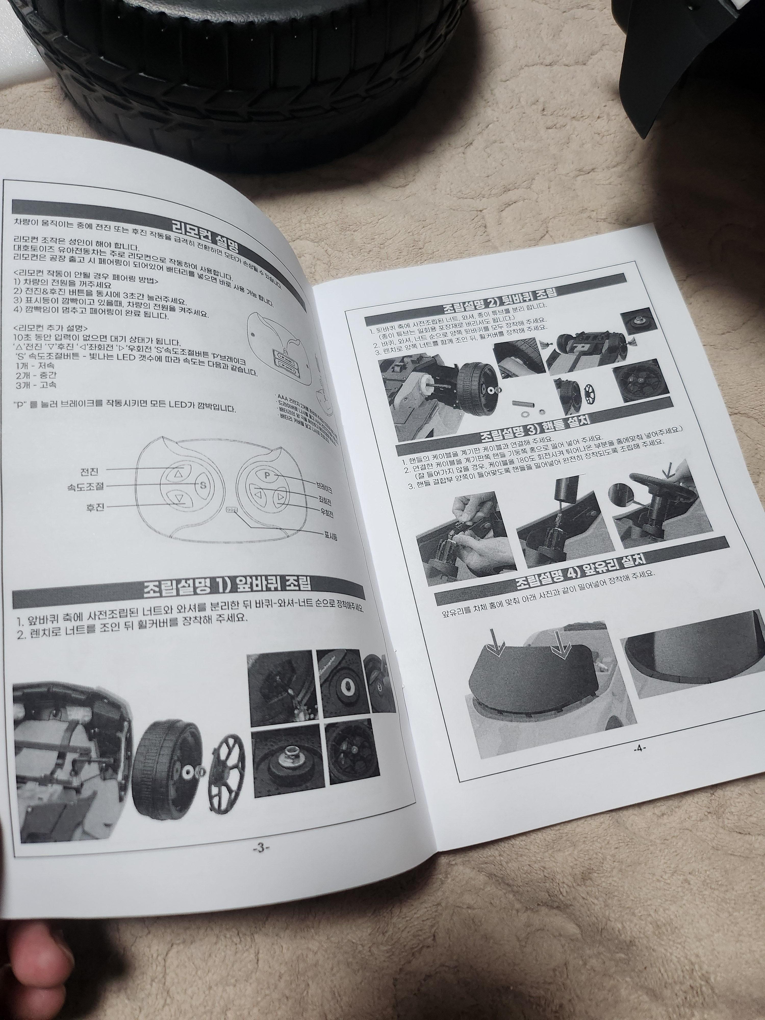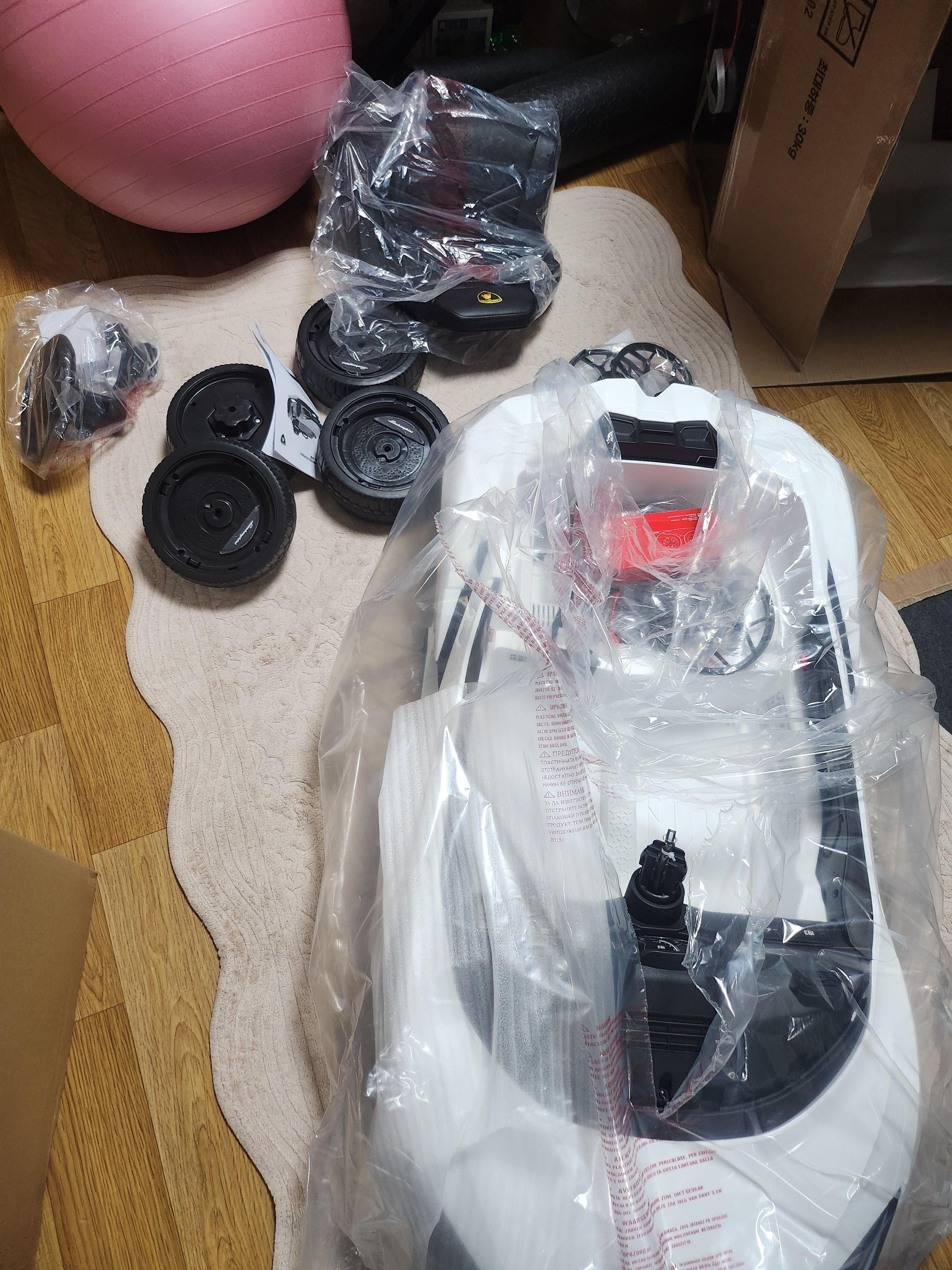 다 뜯어서 펼치면 이렇게 구성품들이 나오고 설명서를 보고 바퀴부터 조립 시작!