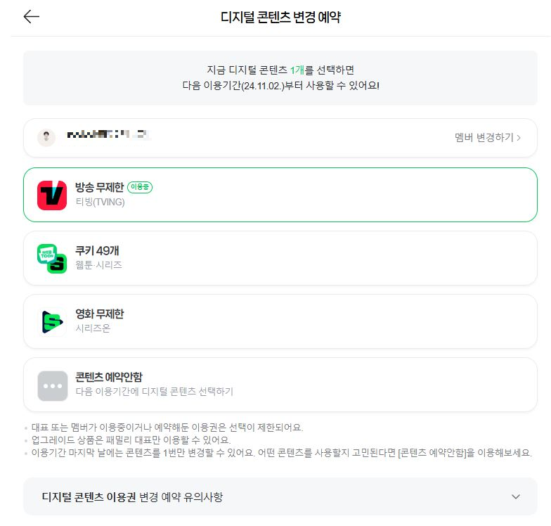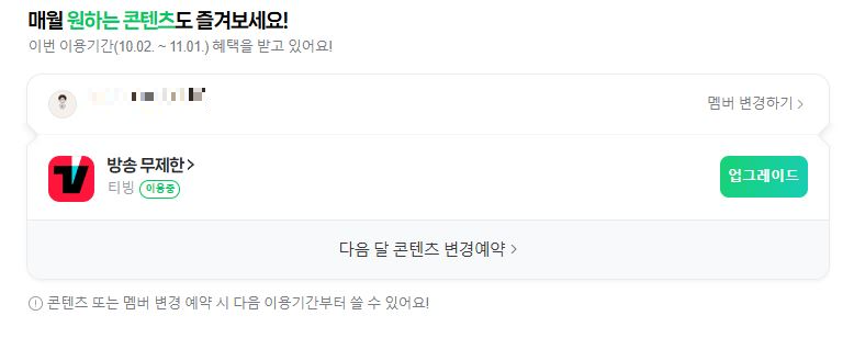 지금은 멤버십을 통해 티빙을 이용하는데 저는 11월에 넷플릭스 나오면 넷플릭스로 변경 예정