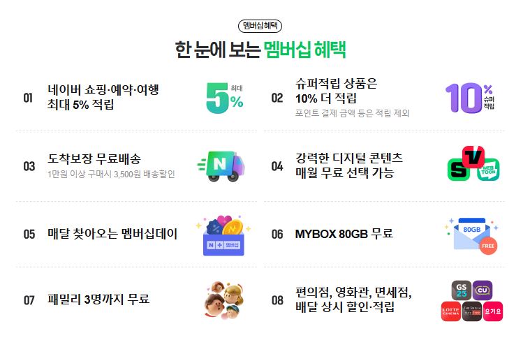 네이버플러스 멤버십은 디지털 콘텐츠 기능 말고도 많은 혜택을 제공하고있어요