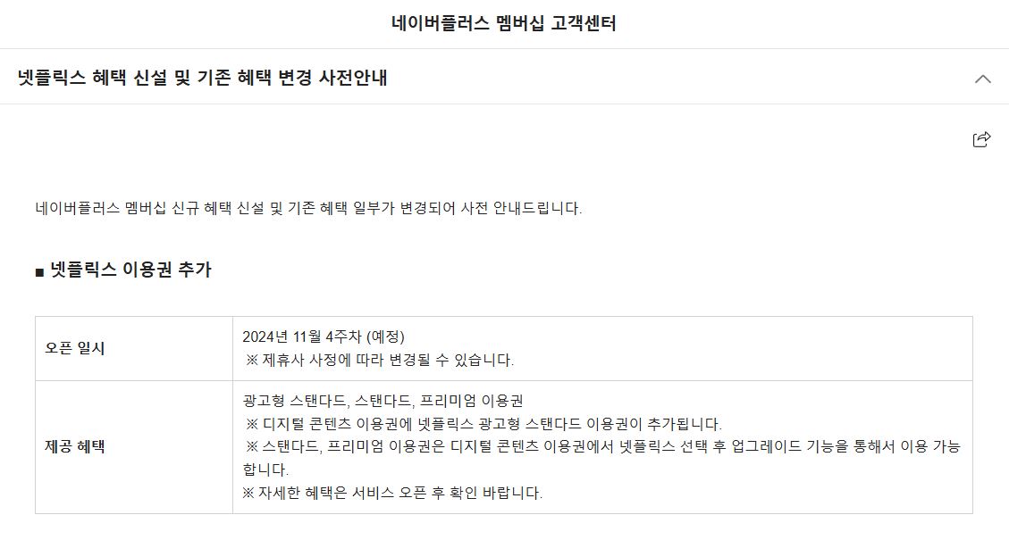 11월 4주차 네이버 멤버십 넷플릭스 이용권 추가 기다려봅니다!