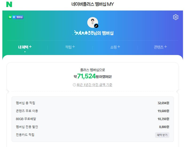 플러스 멤버십으로 약 71,524원 아꼈어요!