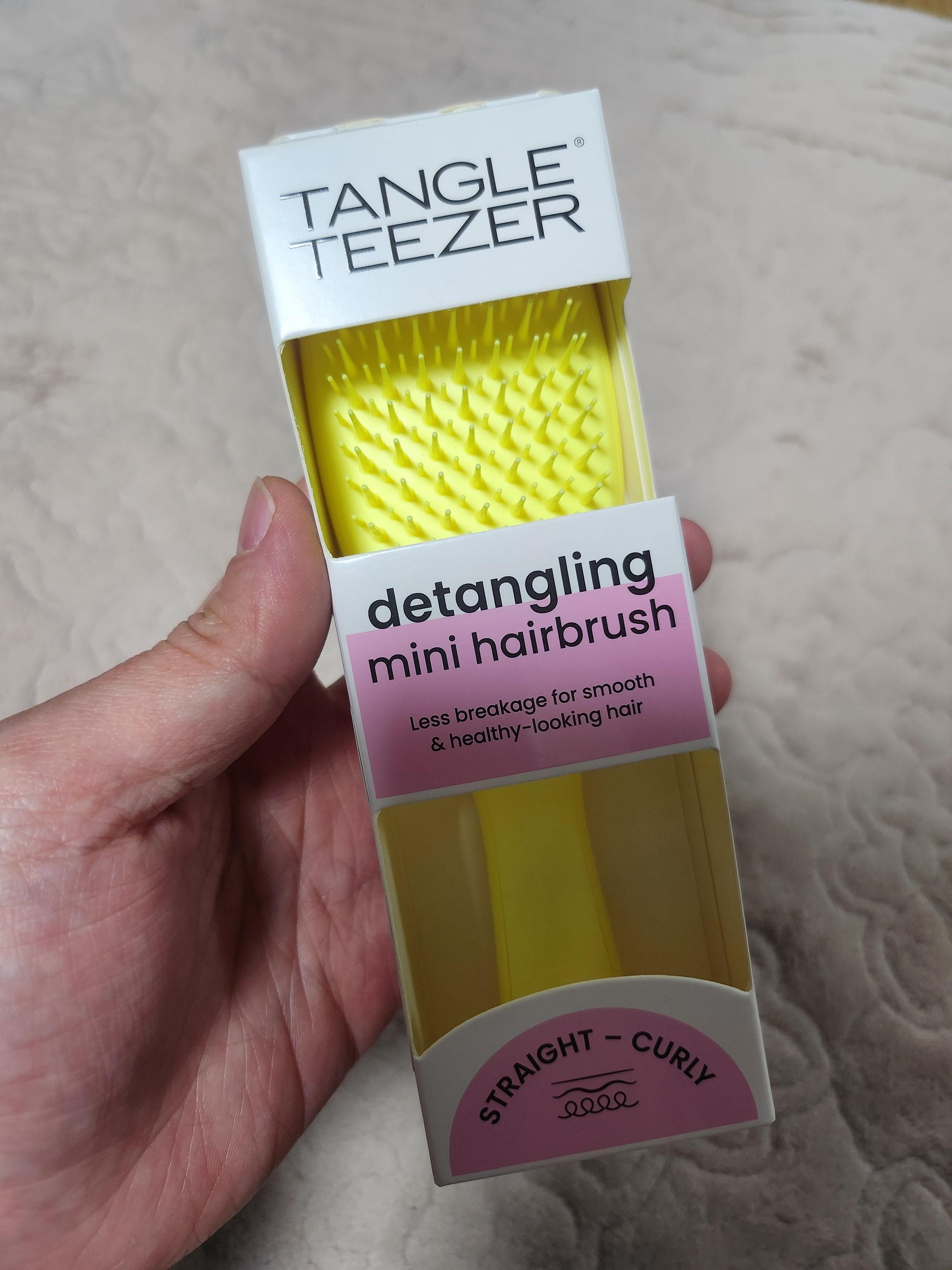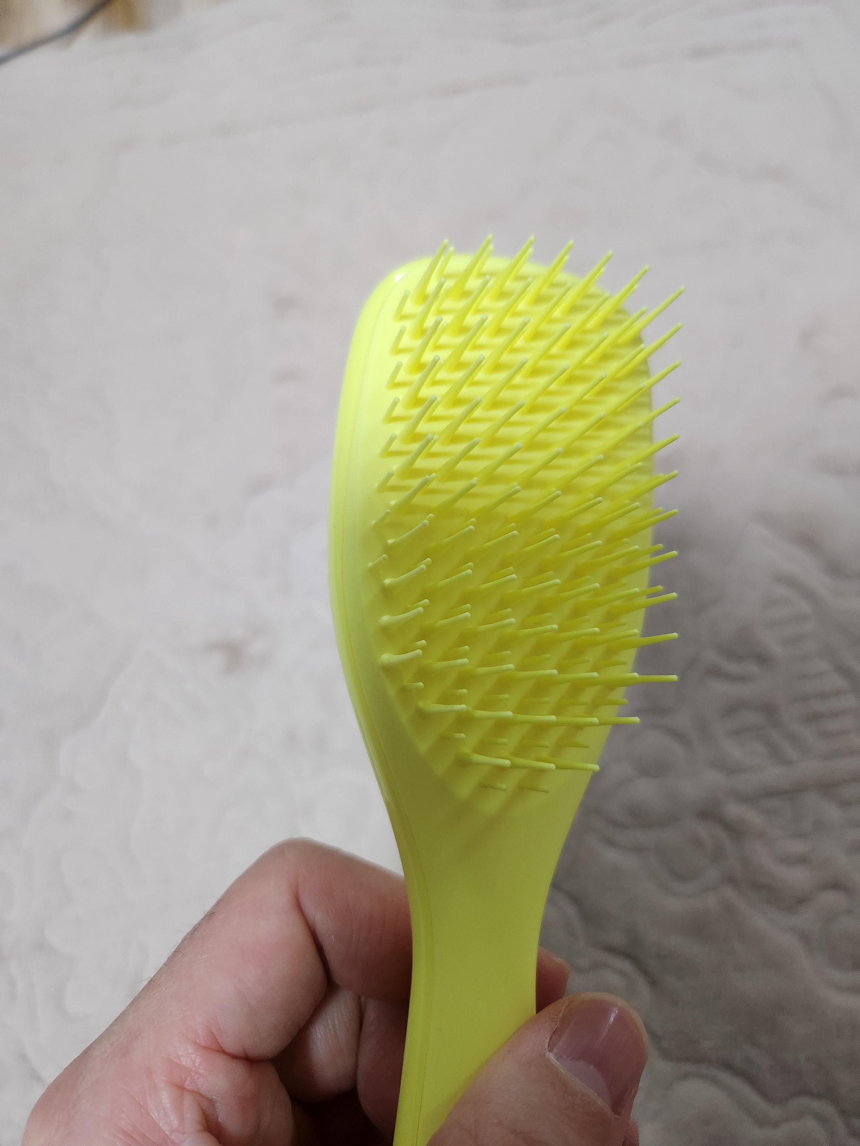 너무 부드럽고 좋아서 좋다니까 여자친구가 선물해준 탱글티저 웻 디탱글러 미니 하이퍼 옐로우 색상을 사용했어요