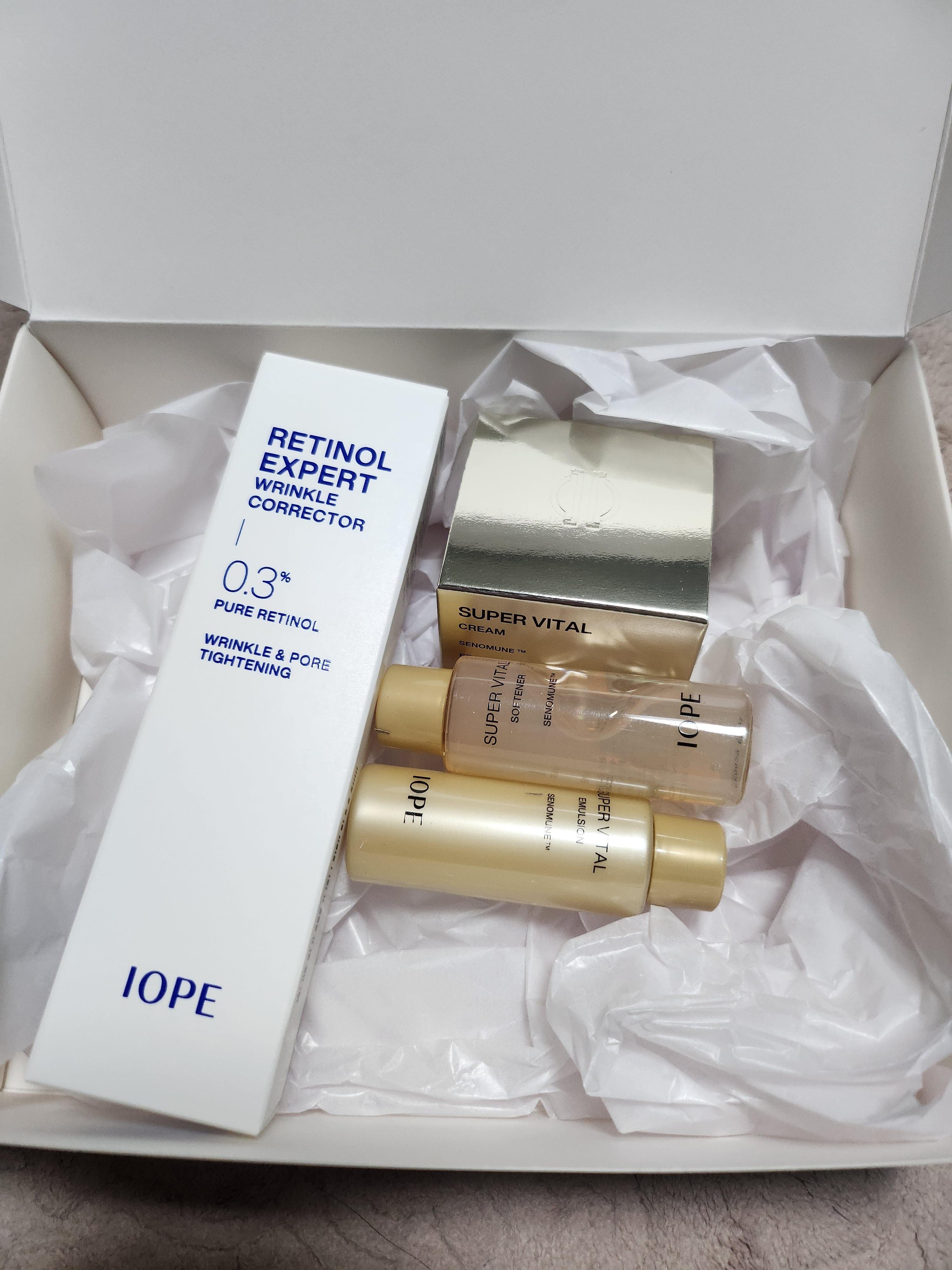 이번에 '아이오페 레티놀 엑스퍼트 0.3% 링클코렉터 20ml 기획 + 견본 5종 세트' 제품을 사용했어요.