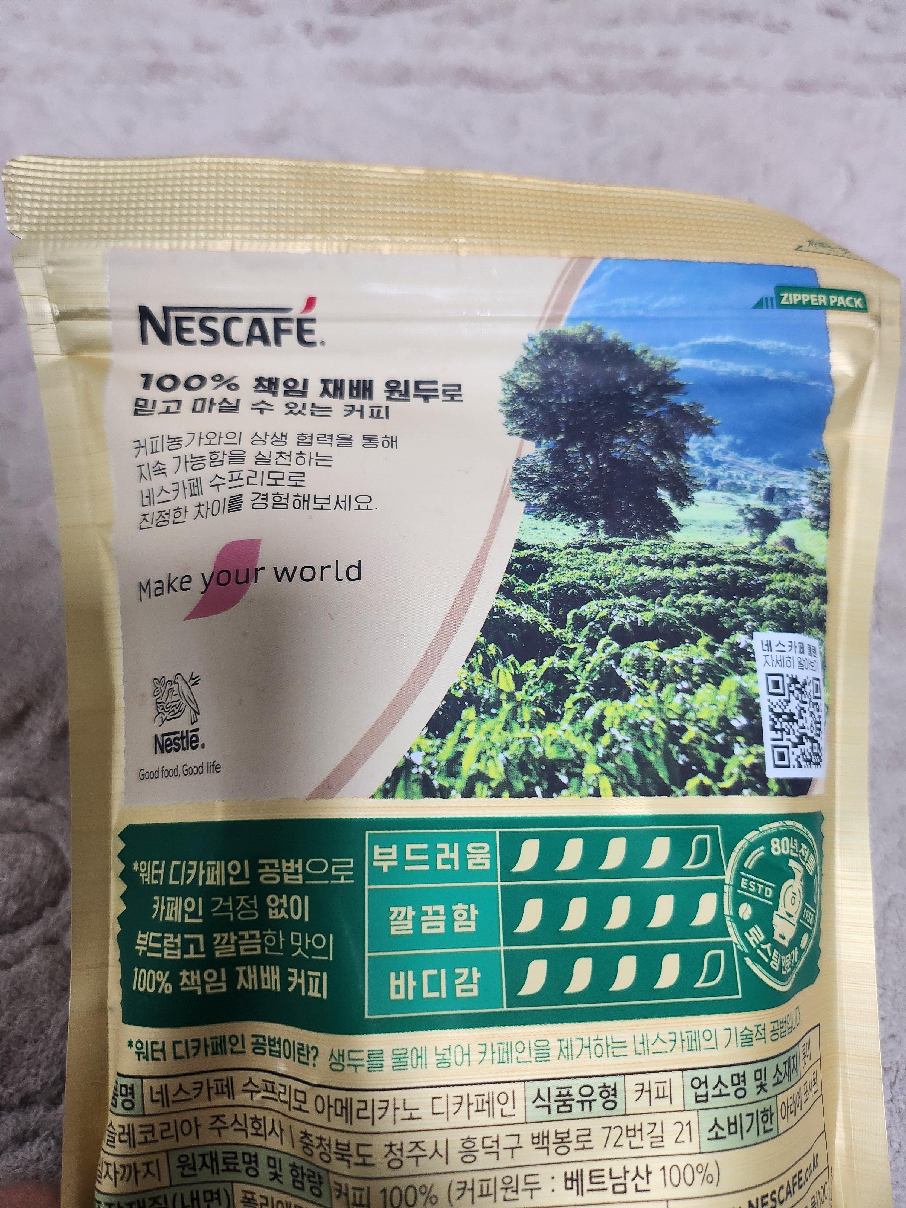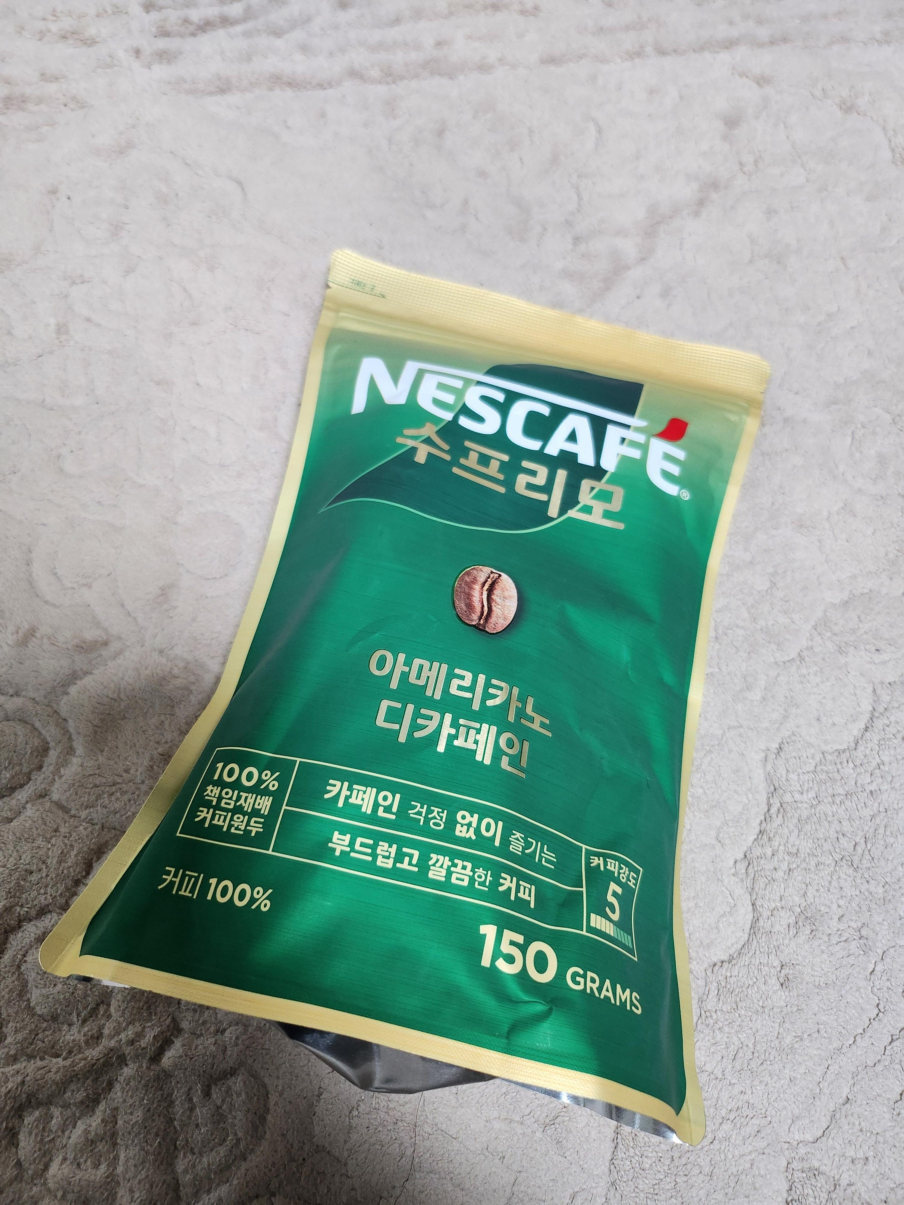 이번에 '네스카페 수프리모 디카페인 아메리카노 원두커피믹스, 150g' 제품을 구매했어요.