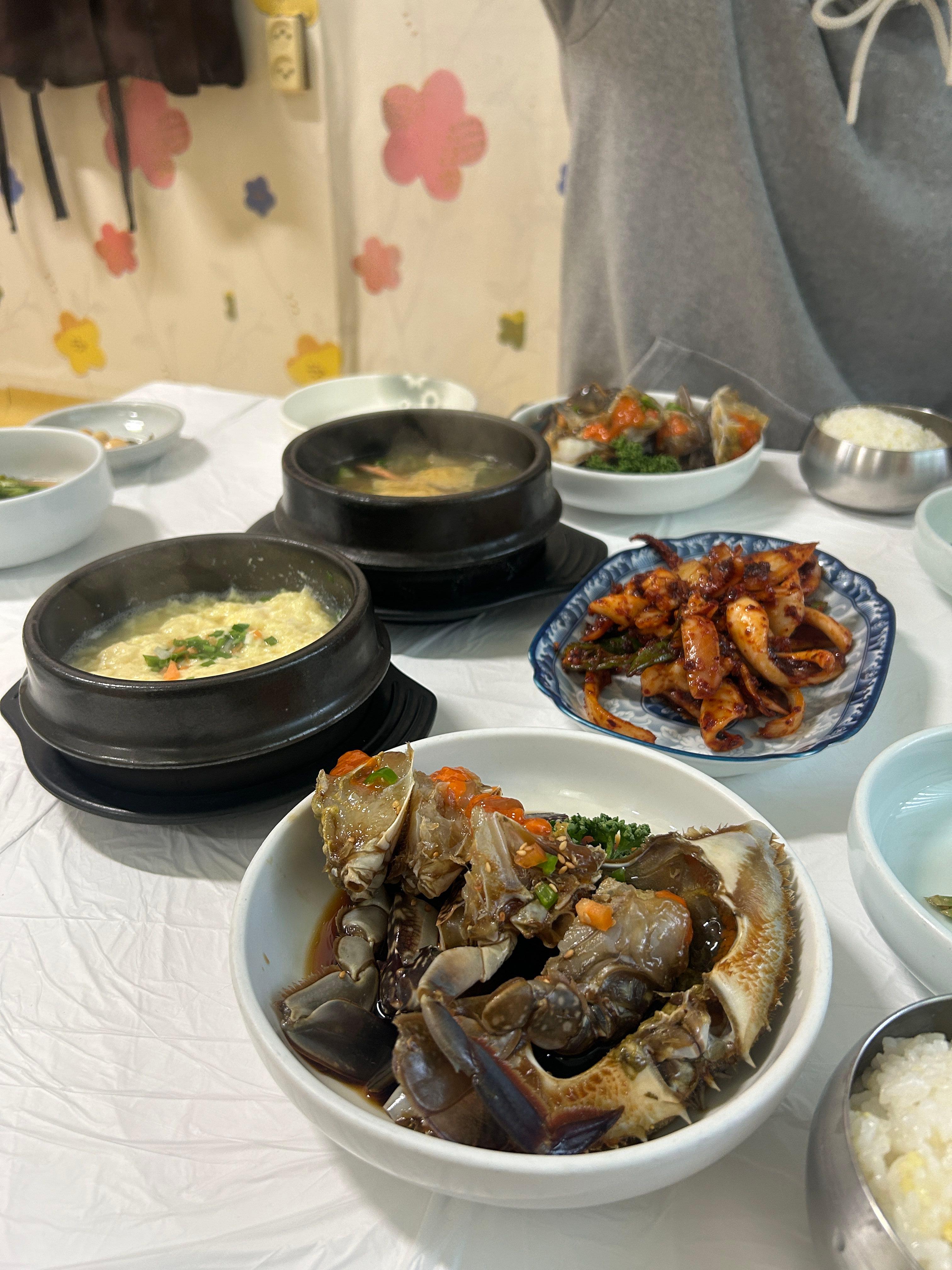 이렇게 한상 가득 딱 차려지는데 암꽃게에 이정도 반찬과 구성이면