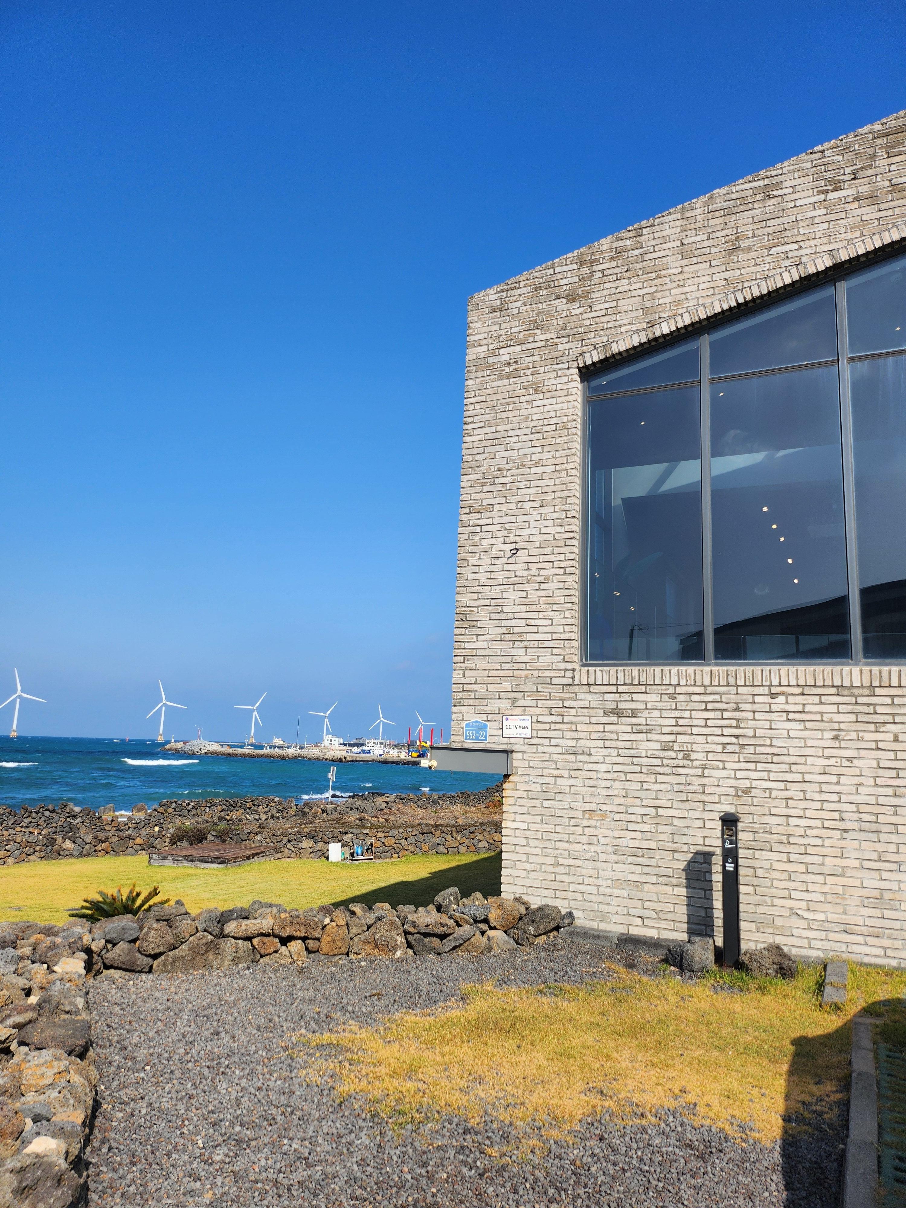 제주 서쪽 여행길, 바람과 파도가 멋지게 어우러진 신창풍차해안도로를 걷다 우연히 만난 바다뷰 카페 클랭블루.