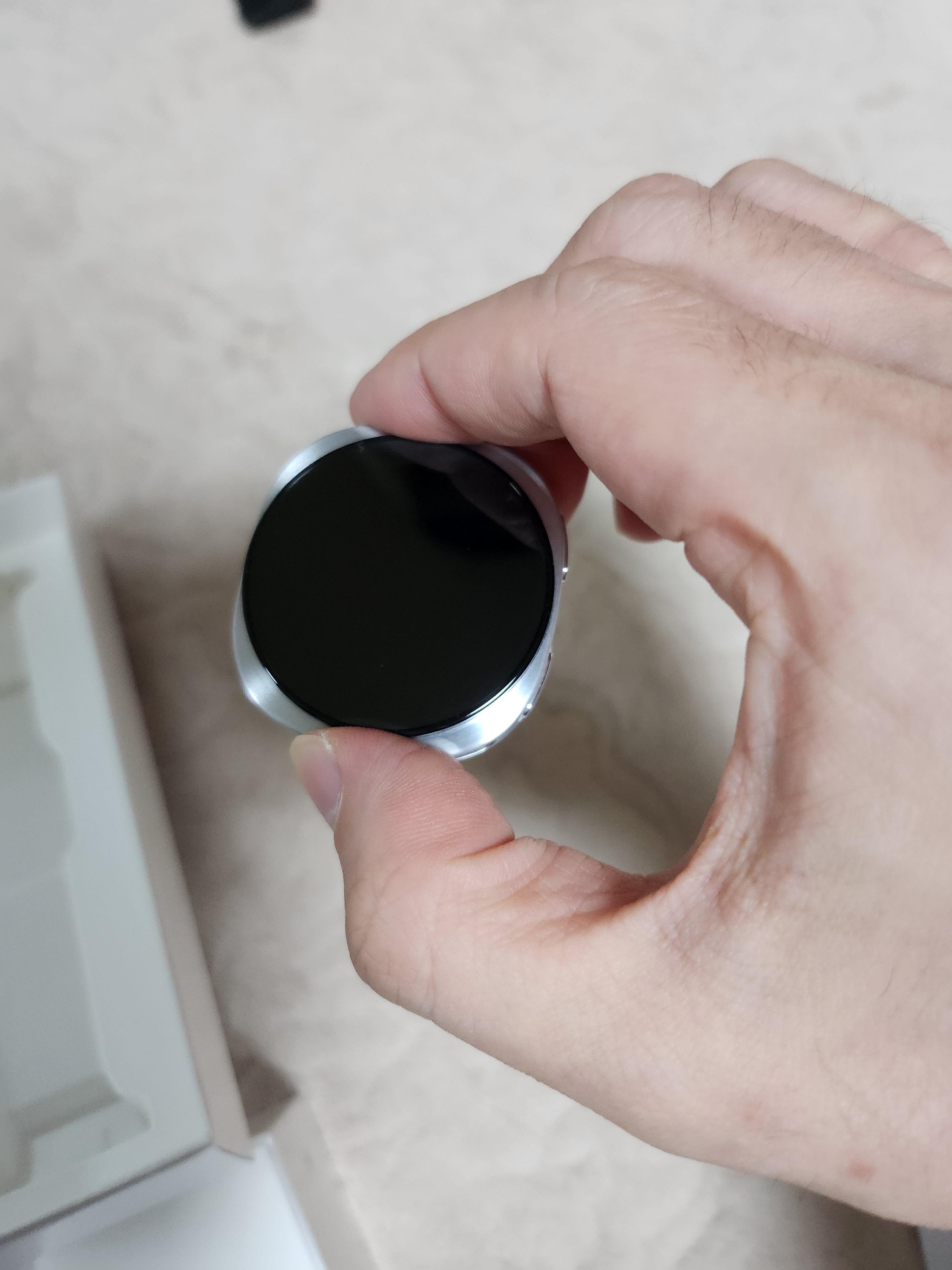갤럭시워치8 40mm는 특유의 ‘쿠션형’ 디자인이라, 동그란 액정에 살짝 네모난 케이스가 결합된 느낌이다.