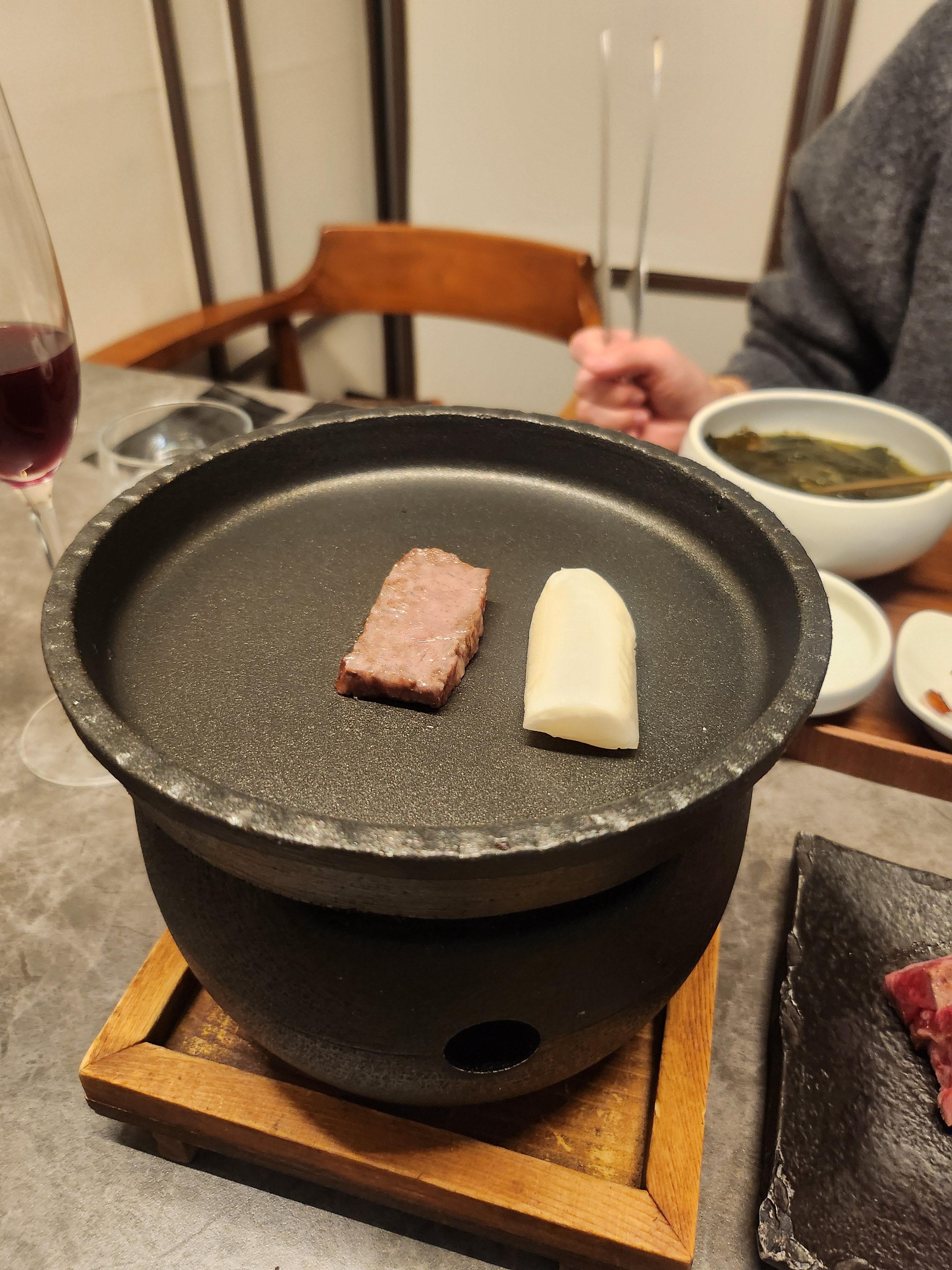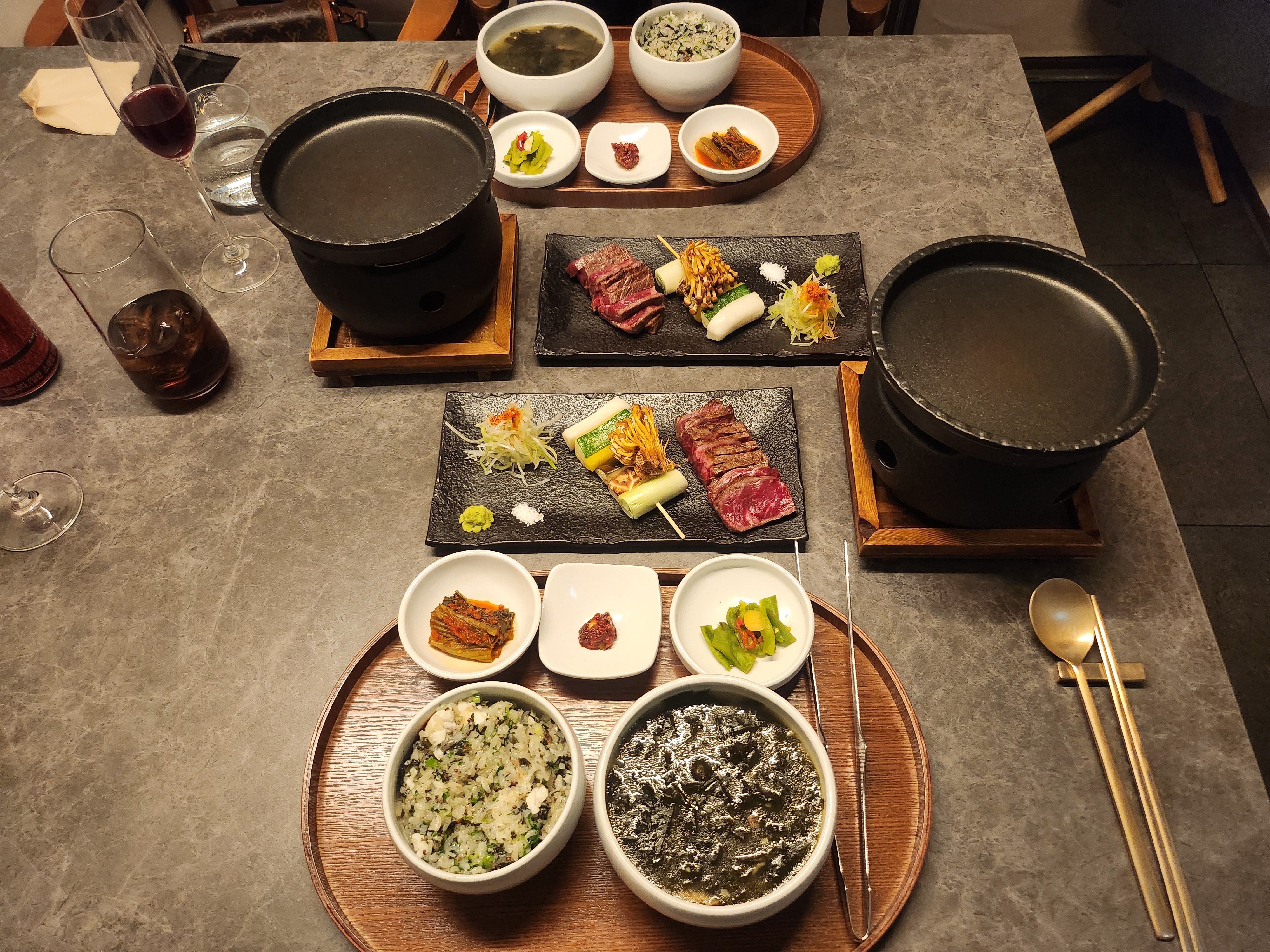 고기는 초벌해서 나오는데 개인화로에 원하는 익힘 정도로 구워 먹고