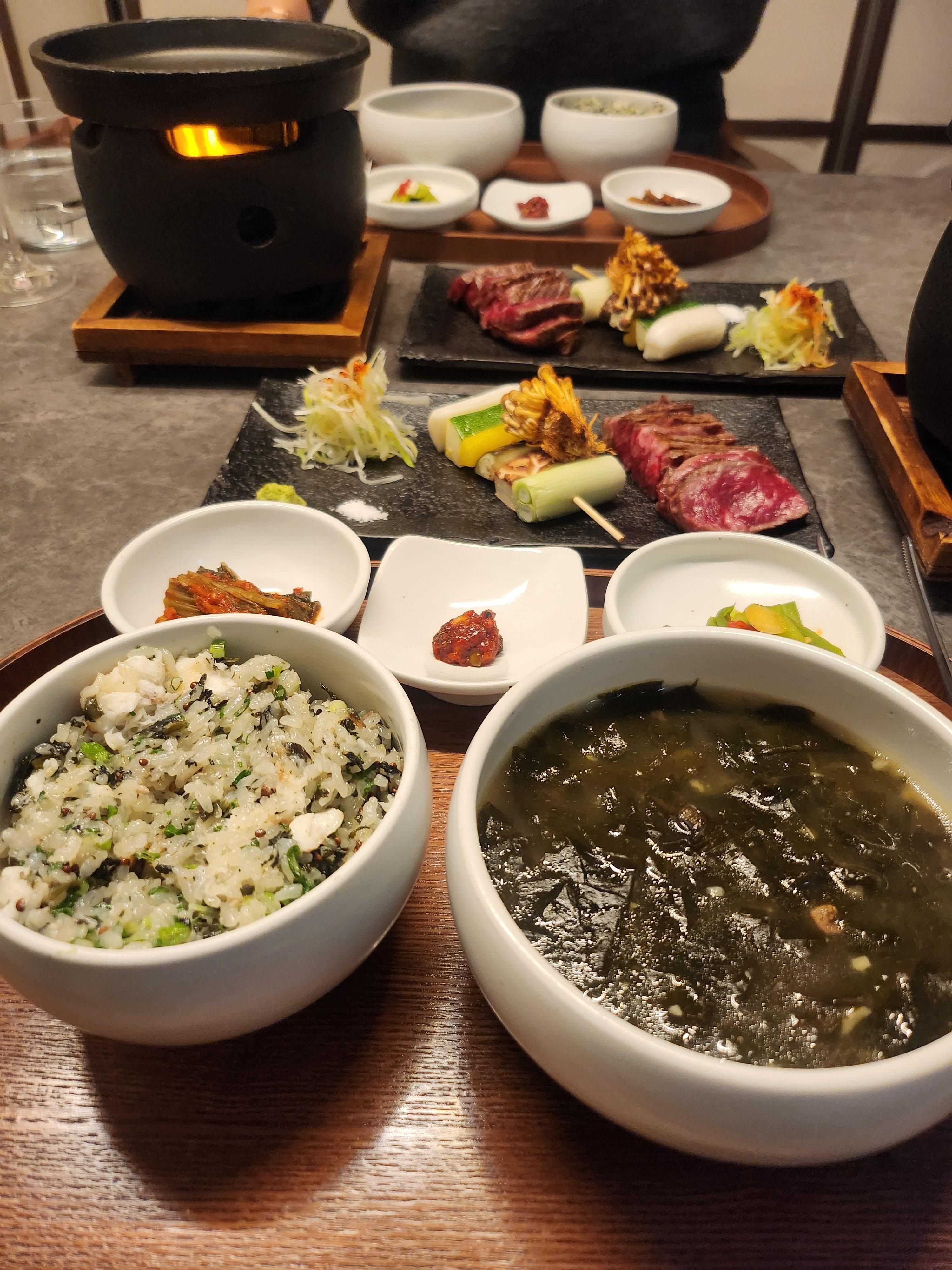 밥이 아주 찰지고 미역국도 맛있어요