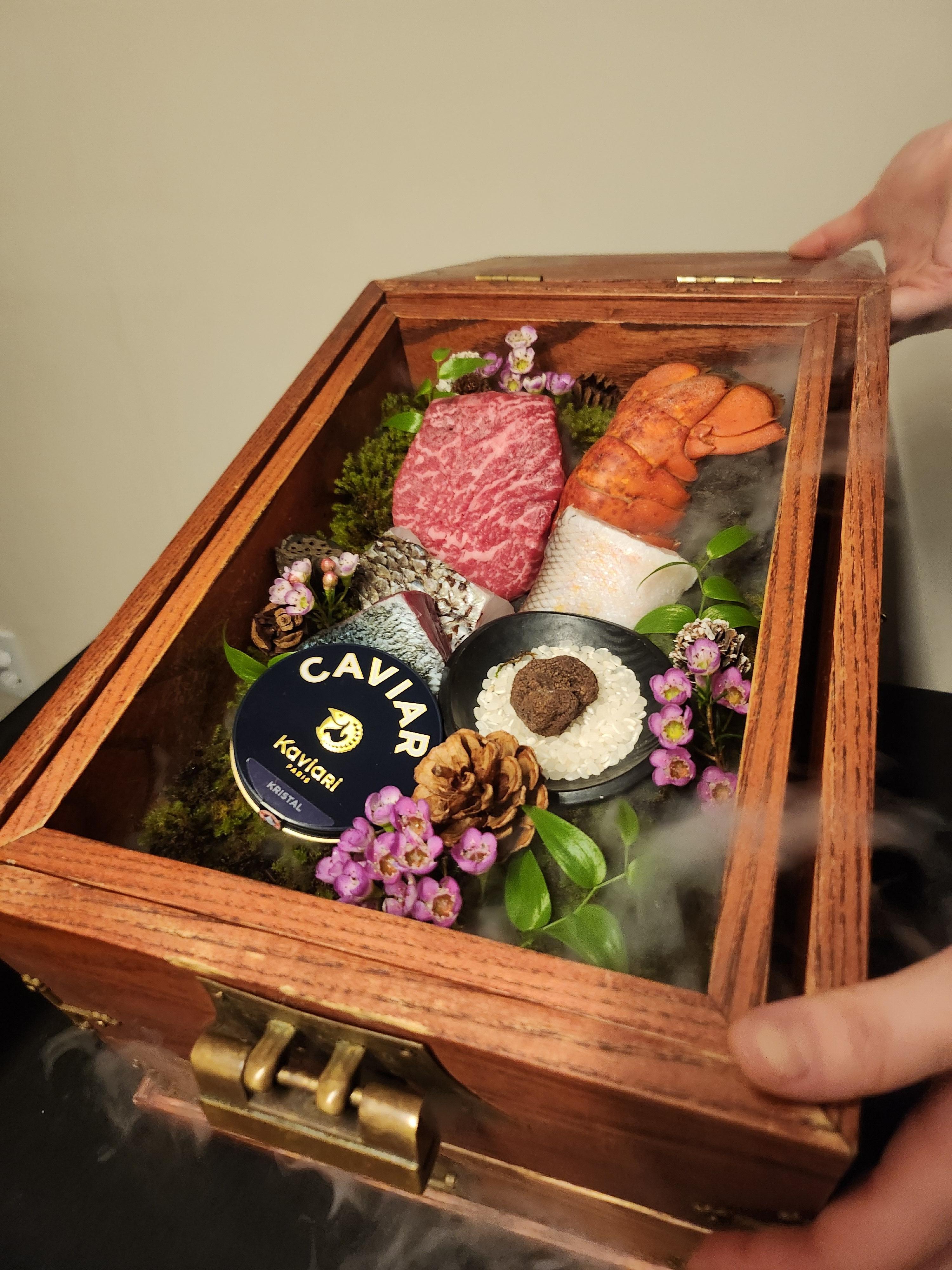 고기, 랍스터, 도미, 트러플, 캐비어 등...