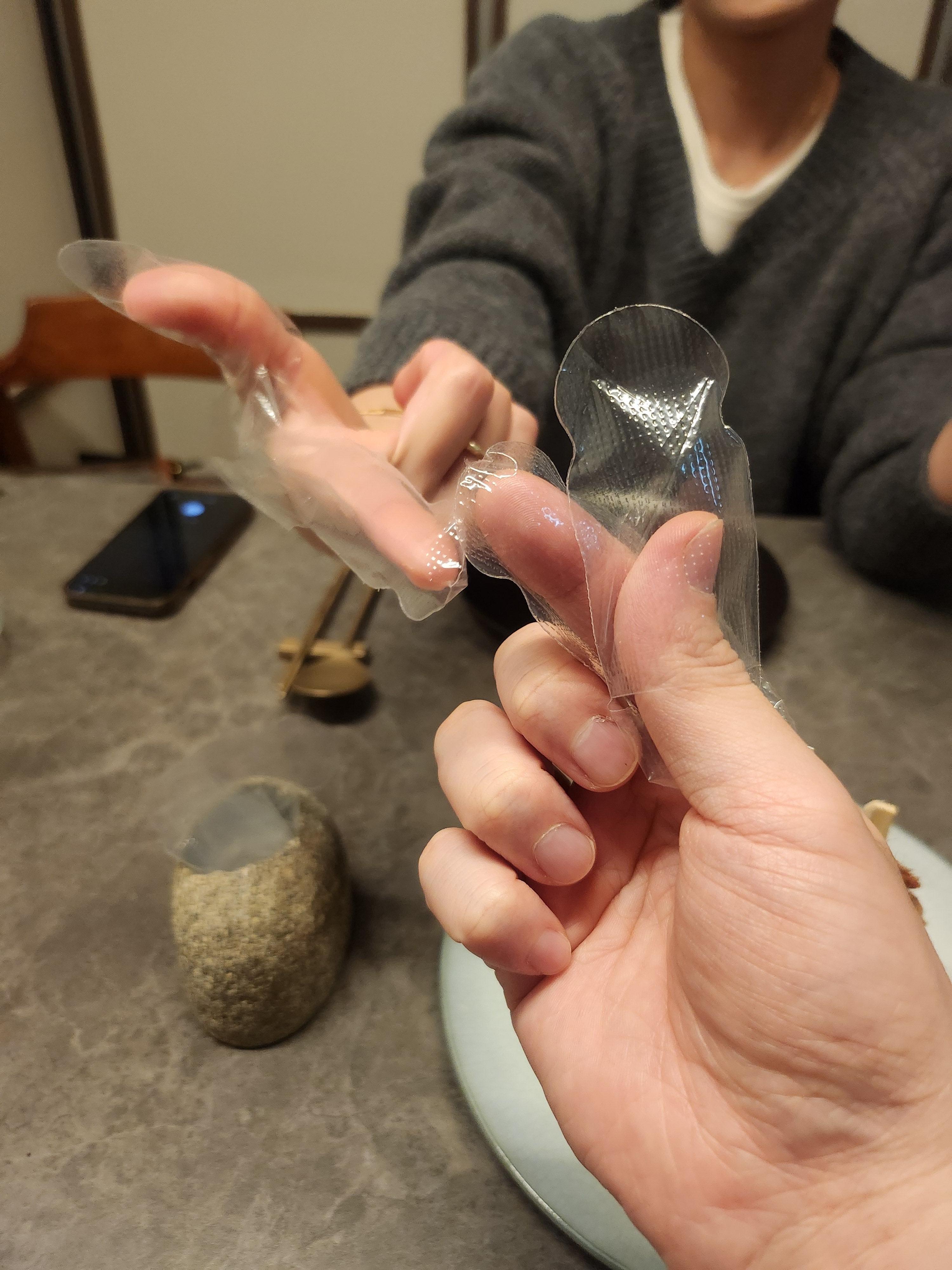 핑거 장갑도 같이 나와서 이렇게 손가락에 끼고 잡고 먹습니다!