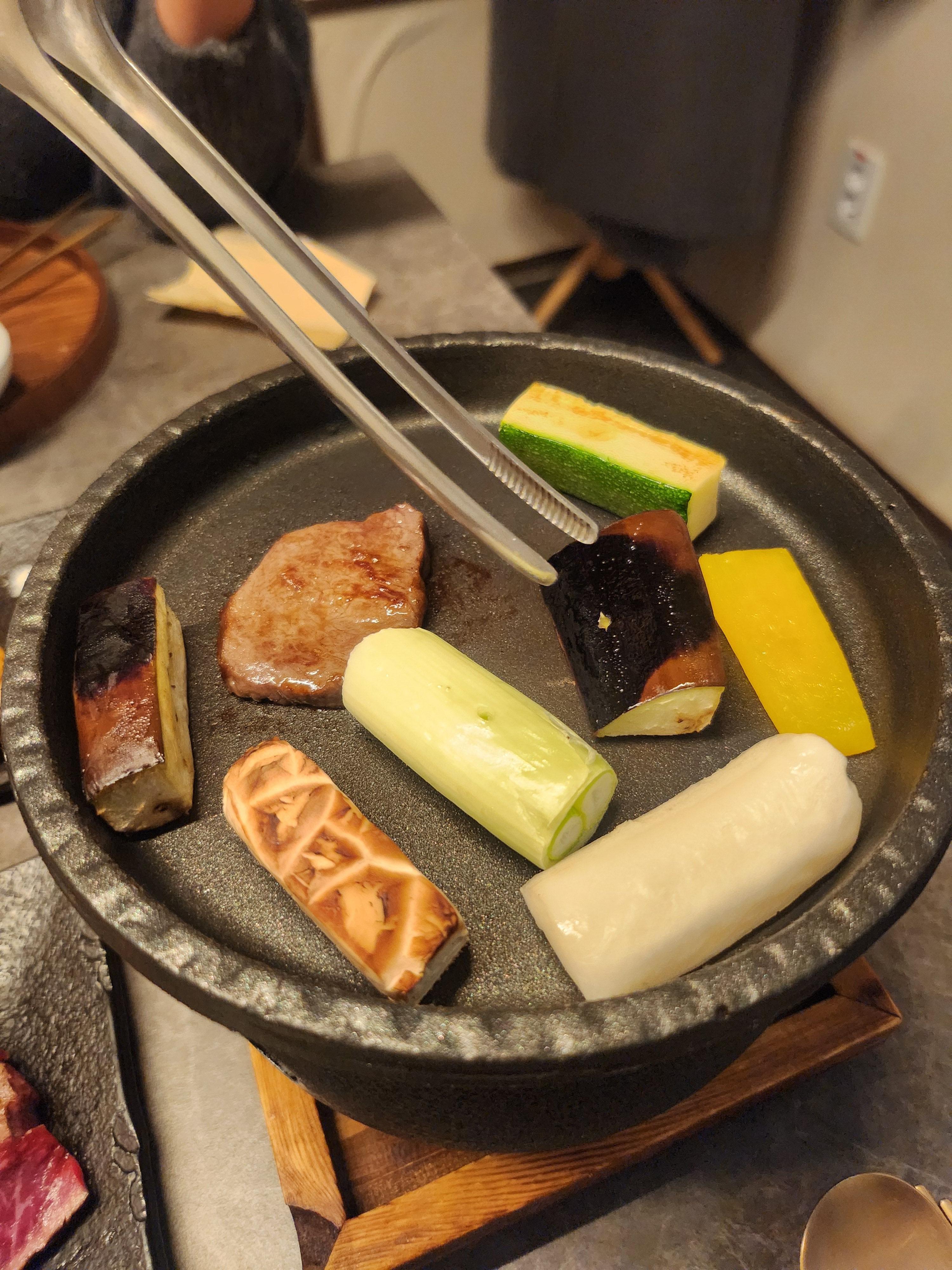 고기 진짜 맛있고 버섯, 떡, 파, 호박, 가지, 파프리카 구워서 함께 먹었더니 더 맛있네요